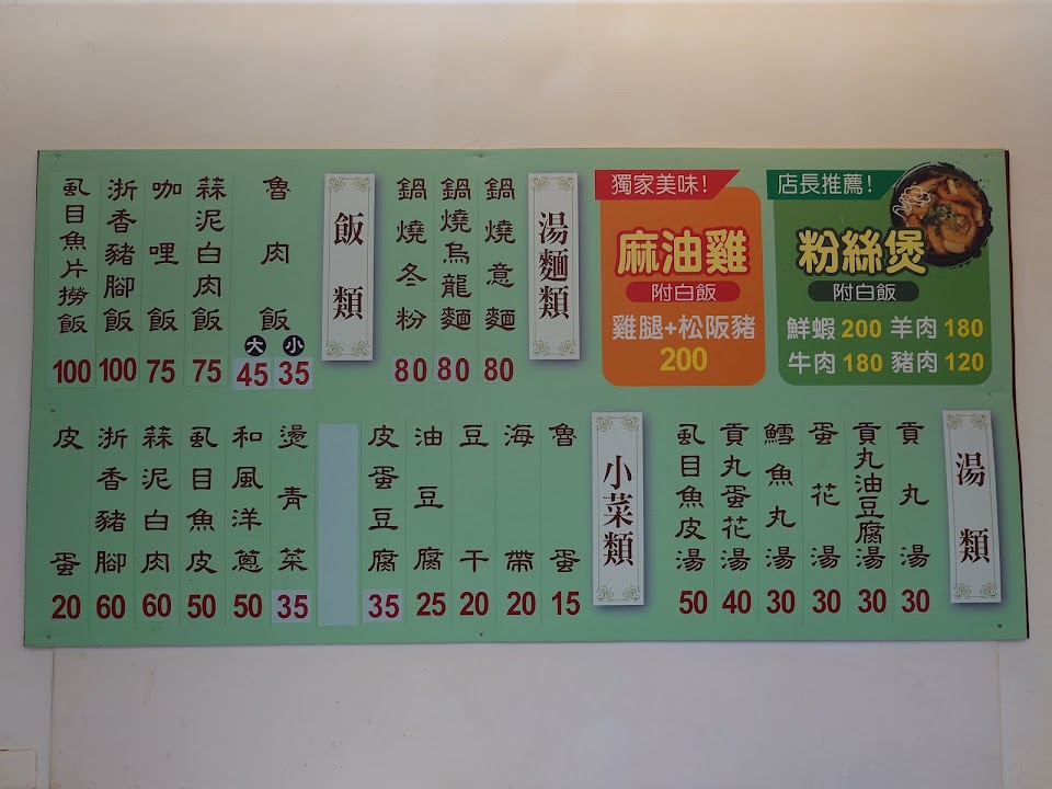 環境乾淨,闆娘親切且非常熱忱,飯後多聊了兩句完全感受到她對自家食物的自信,下次要去試麻油雞跟粉絲煲?