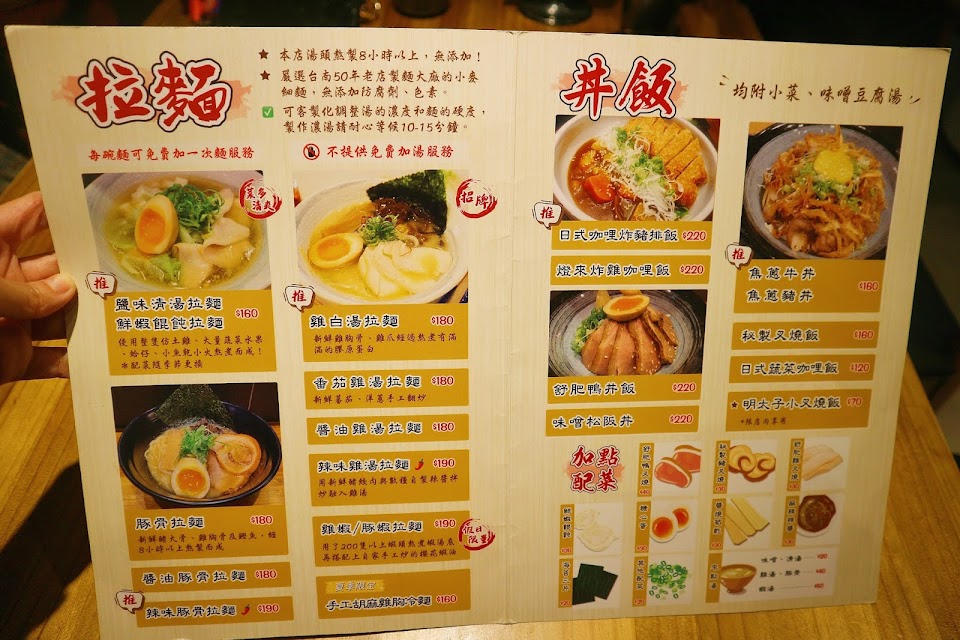 約莫晚上八點初抵達,有些像是蛤蜊、蝦子類型的拉麵會賣完,於是點了雞白湯拉麵