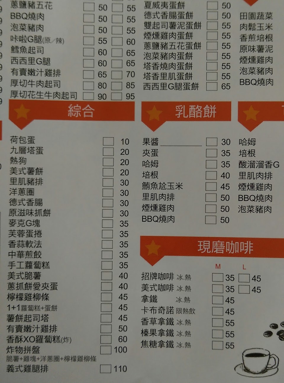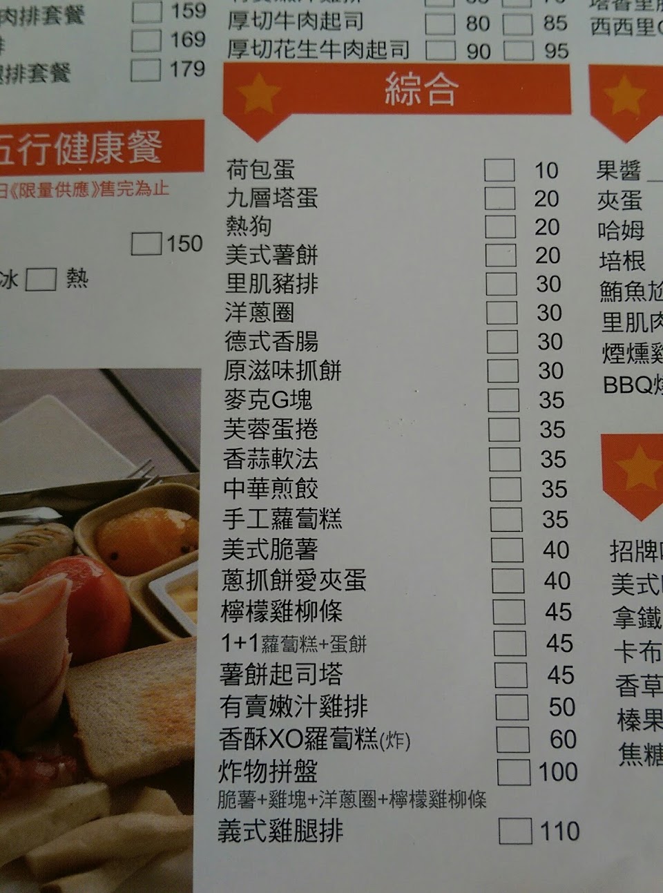 單點甜不辣,燻雞歐姆蛋,培根蛋餅,雞塊,草吐