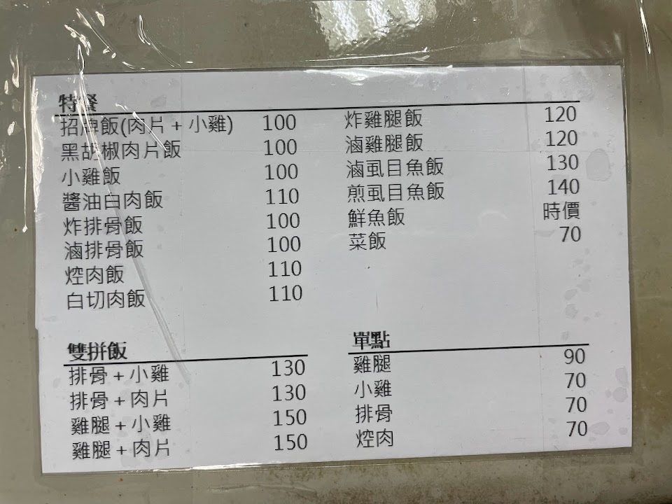 這家應該可以算是城中區便當界CP值的前三名,90元可以吃到一肉四菜,還可以喝湯,而且他們的配菜都很有誠意,一點兒也不馬虎,選擇又多,在大通膨時代實在是很划算的選擇,尤其在寸土寸金的城中商業區裡面,附近的便當幾乎都是百元起跳,推薦他們家招牌的小雞飯,滿滿的台式炸雞塊,除了環境差點,真的很不錯!