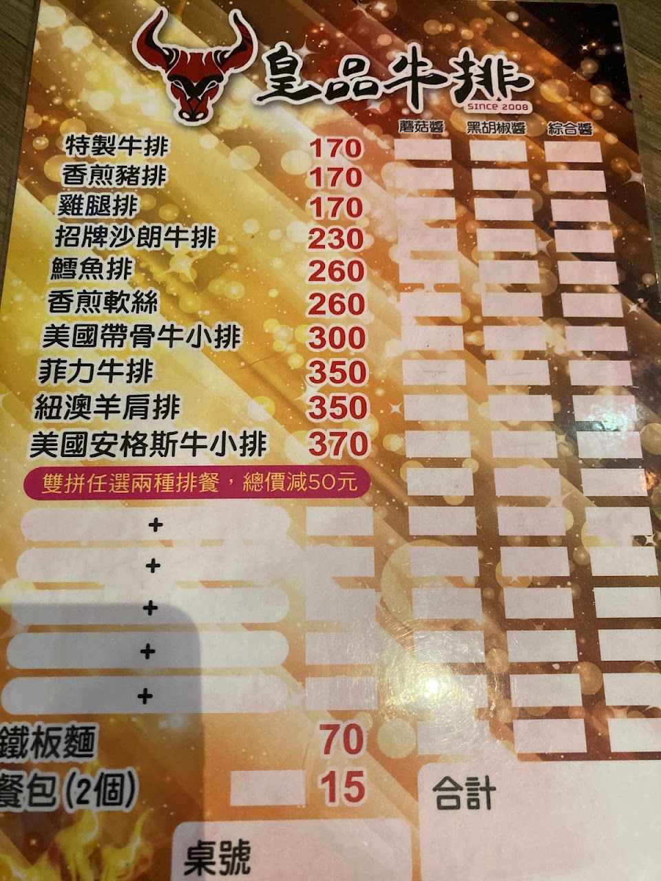 2024最新在地推薦餐廳的菜單_皇品牛排的菜單、圖片