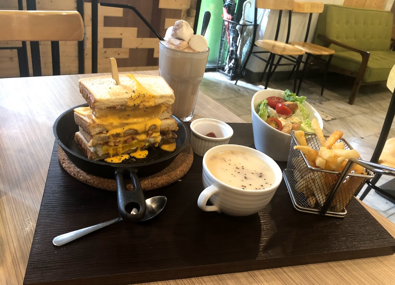 熔岩起司花肉蛋吐司,誘人的起司搭配花生醬與處理不錯的肉排,整體味道很好。不過只能點套餐且套餐價格不低蠻扣分低,雖然薯條炸的還算不錯。店內的排隊與入座狀況可能不太會再訪,環境也有點雜亂。