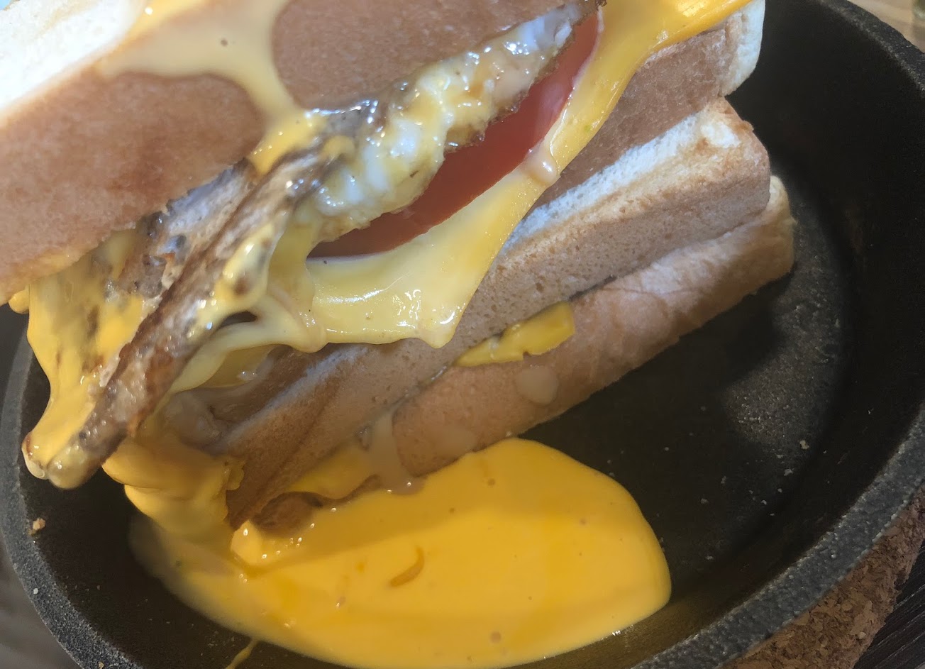 讓人受不了的就是他,疊起來吐司外流著岩漿起司,實際一吃份量很大,起司與肉蛋的部分還不錯,可是沒有起司的其他部分略乾,有點小可惜。