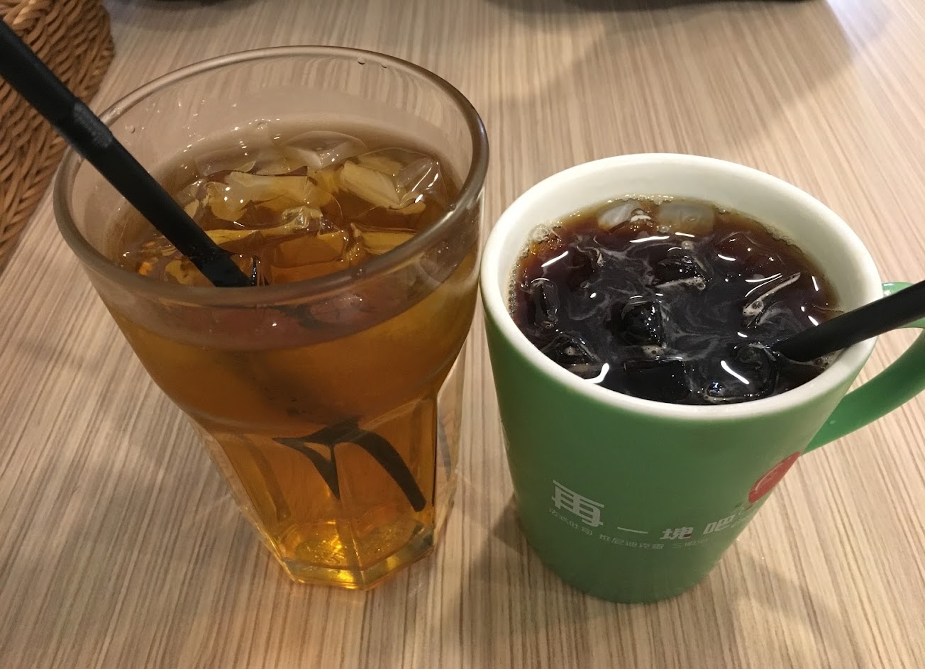 飲料部分一般的蜂蜜綠茶(有點過甜)跟一般的紅茶。味道很一般。不過套餐可以續杯。