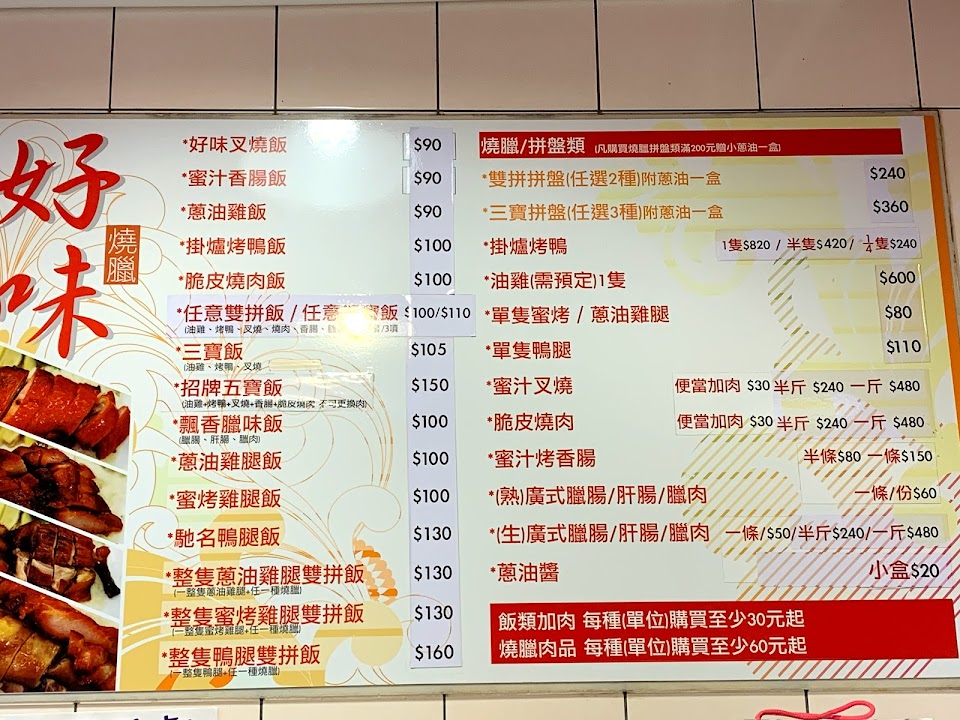 如果沒記錯的話這家店在懷寧街開超級久,也算是歷經時代考驗的老店。 可以從份量看出來在給的肉量上很有誠意,蔥醬也可以要求多加一點,CP值這部分真的沒話說。不過口味就見仁見智,我個人覺得燒肉沒有入味,蔥醬也有點奇妙。不過這純屬個人看法,考慮到肉的份量這依然是家不錯的燒臘店,適合想多吃肉的消費者。