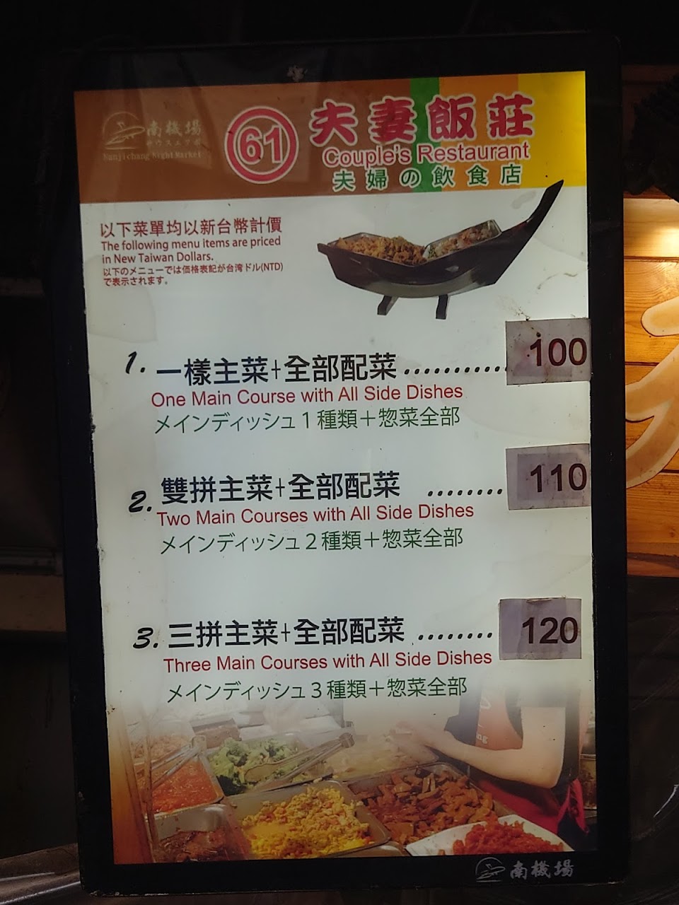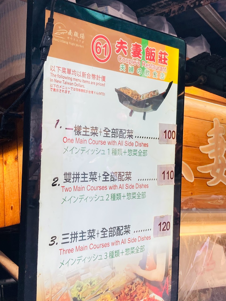 就在南機場夜市裡,110元就可以吃到雙主菜,份量足夠&價格實在,11點40就先過來排隊買餐,等了10來分鐘不會很久。