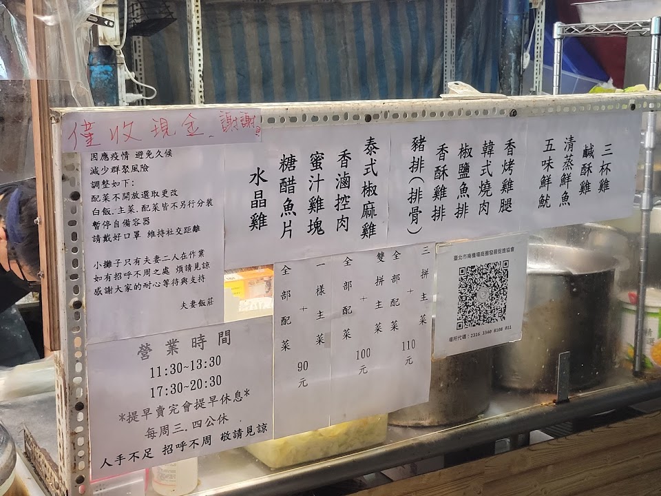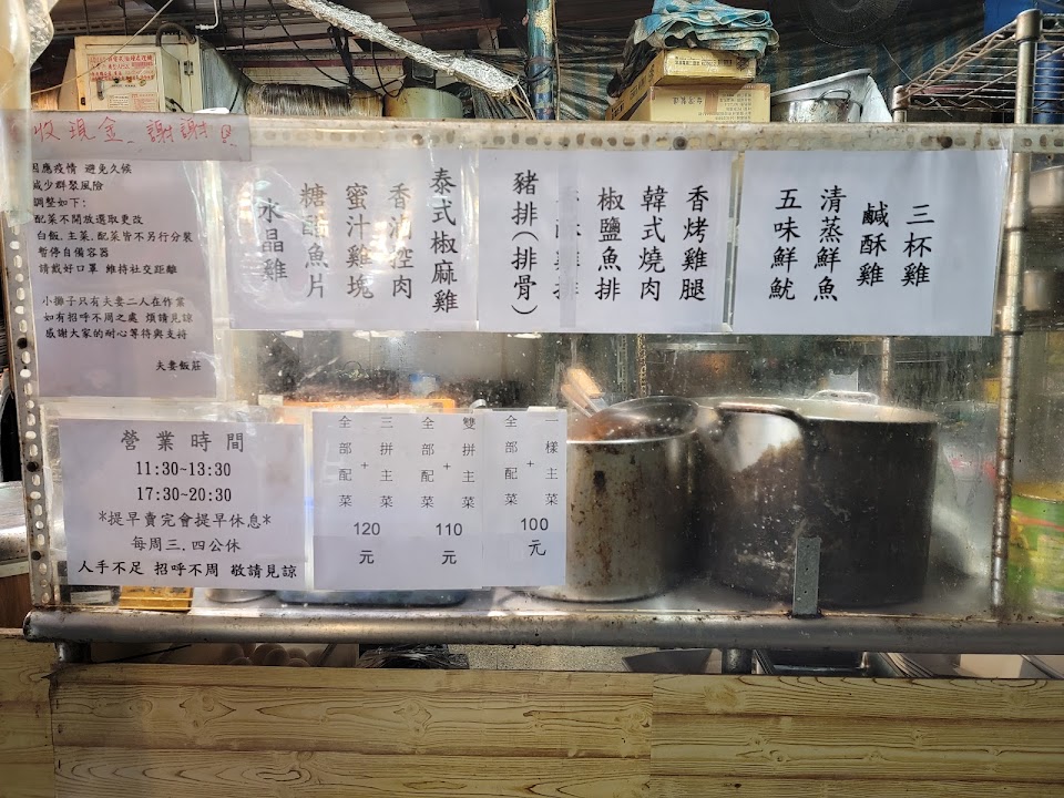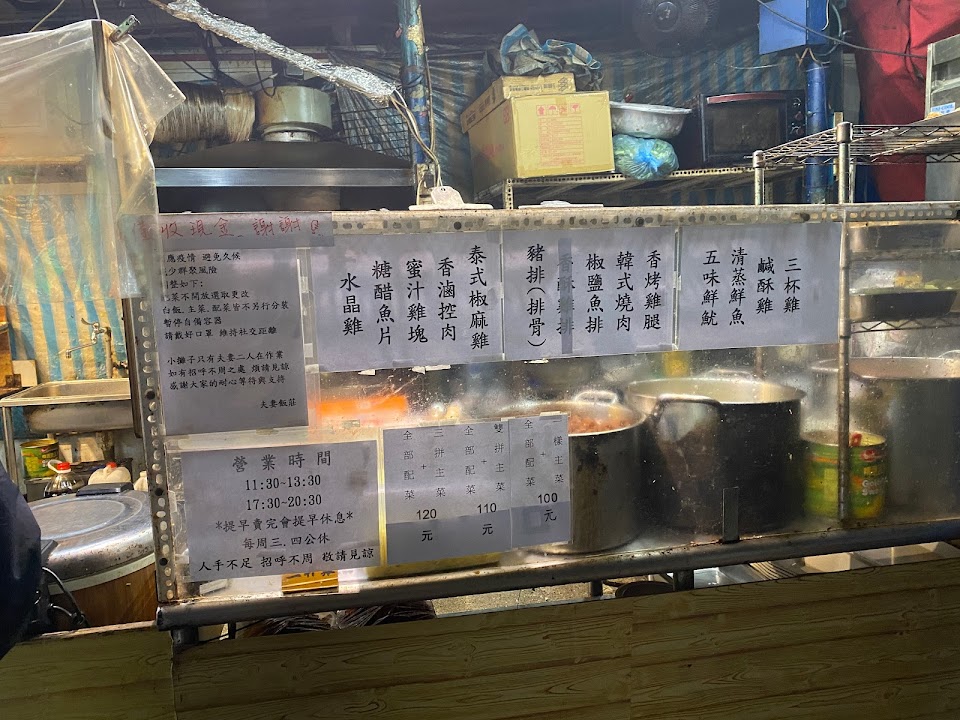 最多有三拼主菜加配菜,我選雙拼價位$110,菜裝的滿滿在便當盒上,料裡好吃,真是誠意十足,老闆夫妻分工合作,但人潮排隊代表飯莊的熱門。