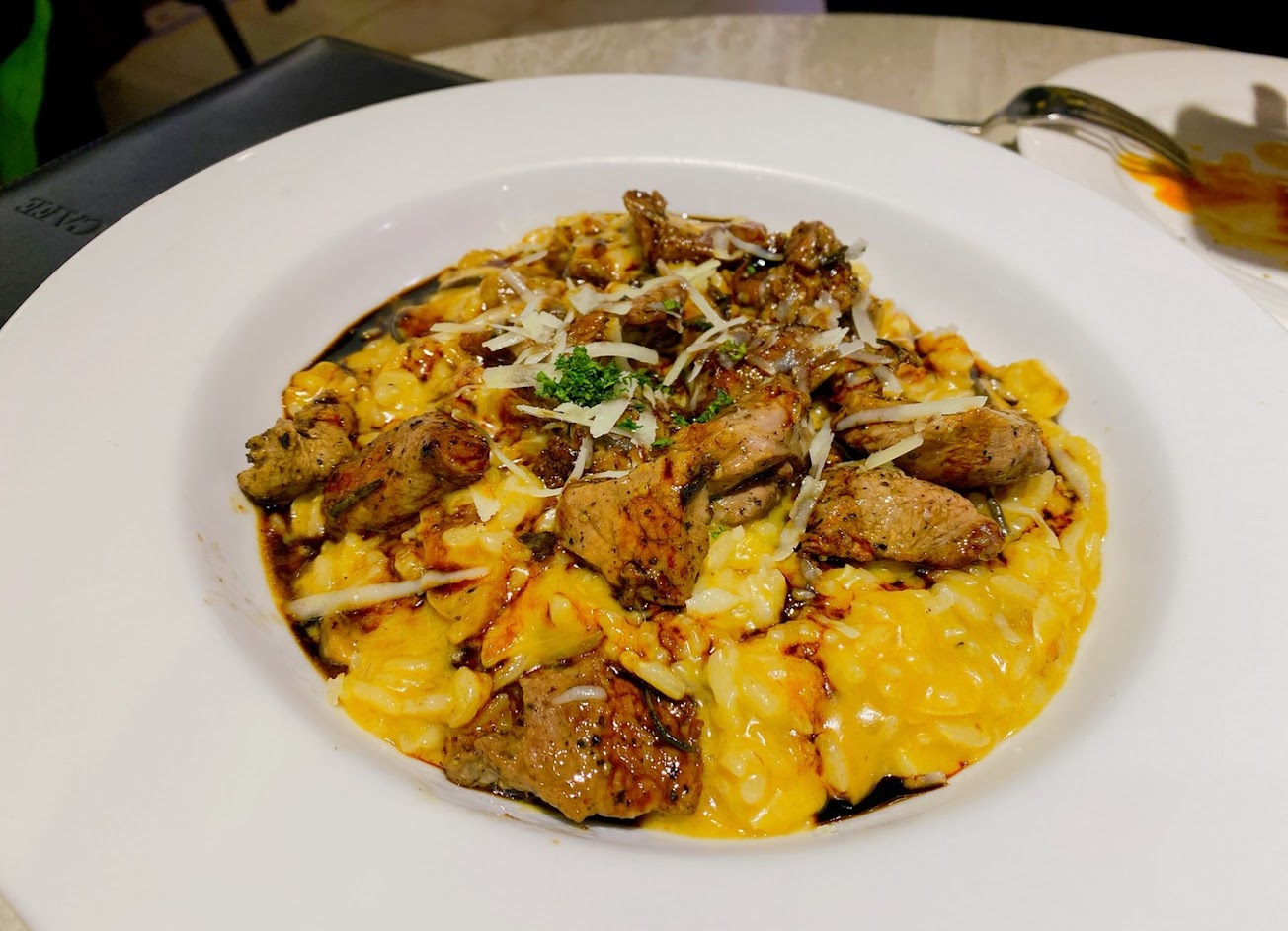 嫩煎紅酒羊菲力燉飯 $320