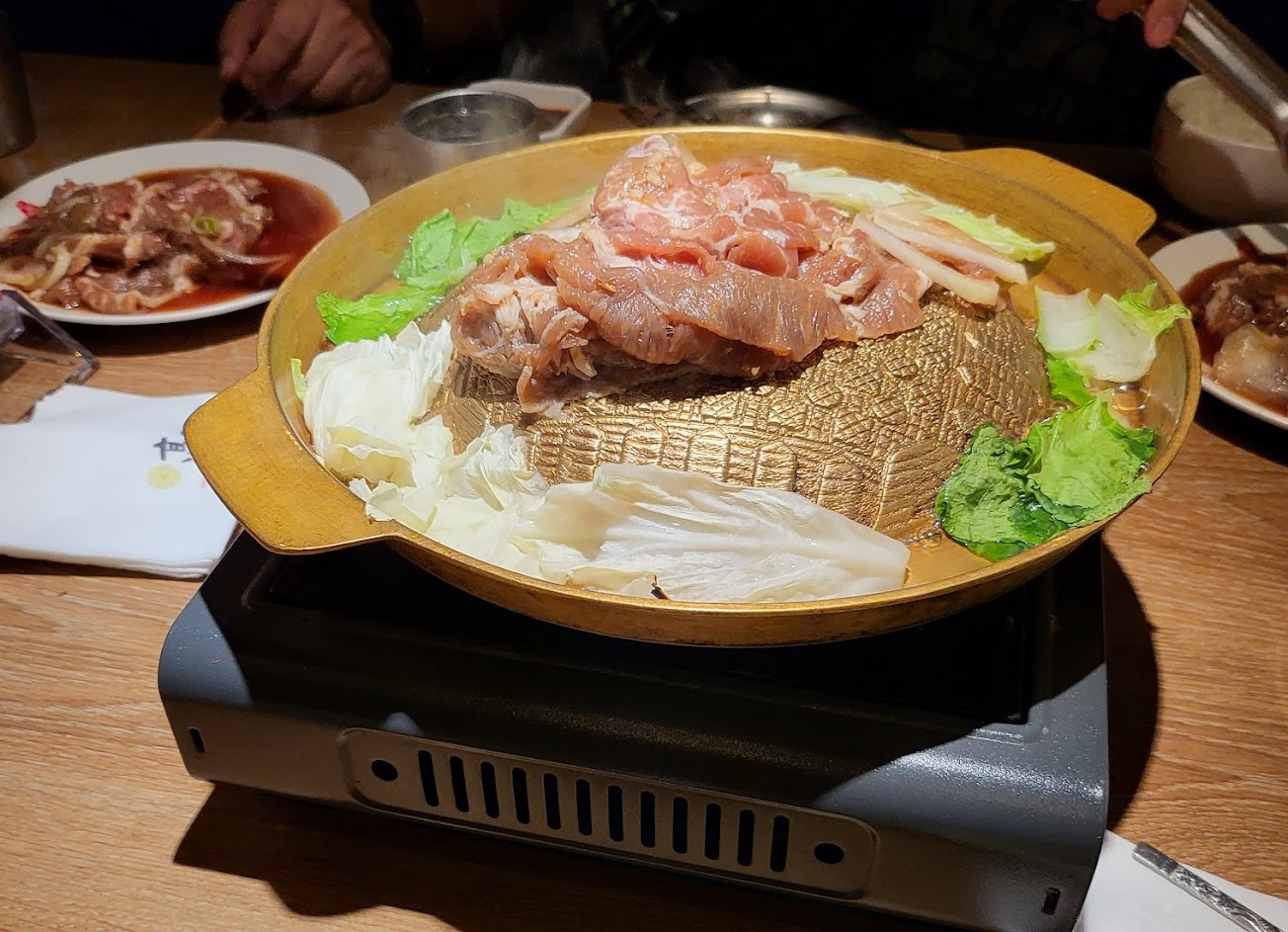 因為是韓國銅盤烤肉吃到飽,以為是固定式的瓦斯,結果是卡式爐使用罐裝瓦斯。