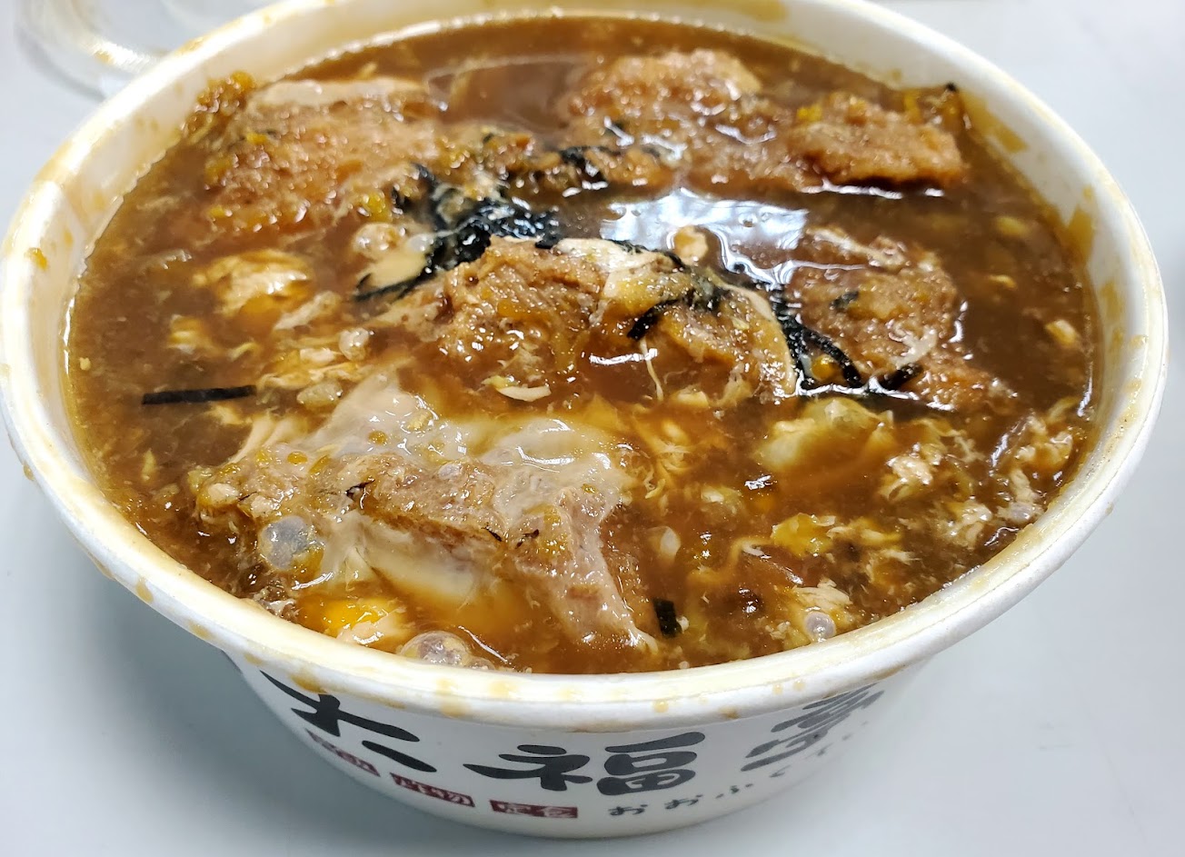 雞肉不嫩,蛋也很少,除了海苔和一點洋蔥外也沒有其他配菜,肉眼可見醬汁很水,調味單調乏味,比大學學餐的丼飯還敷衍