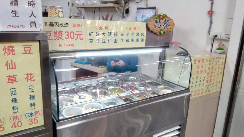 豆花口感吃起來很綿密,有豆香!有別於其它豆花店的是豆花是加冰沙,不是一般的糖水!吃起來也不會太甜~紅豆跟花生吃起來也不會爛爛的,是粒粒分明的那種,個人蠻愛的口感!