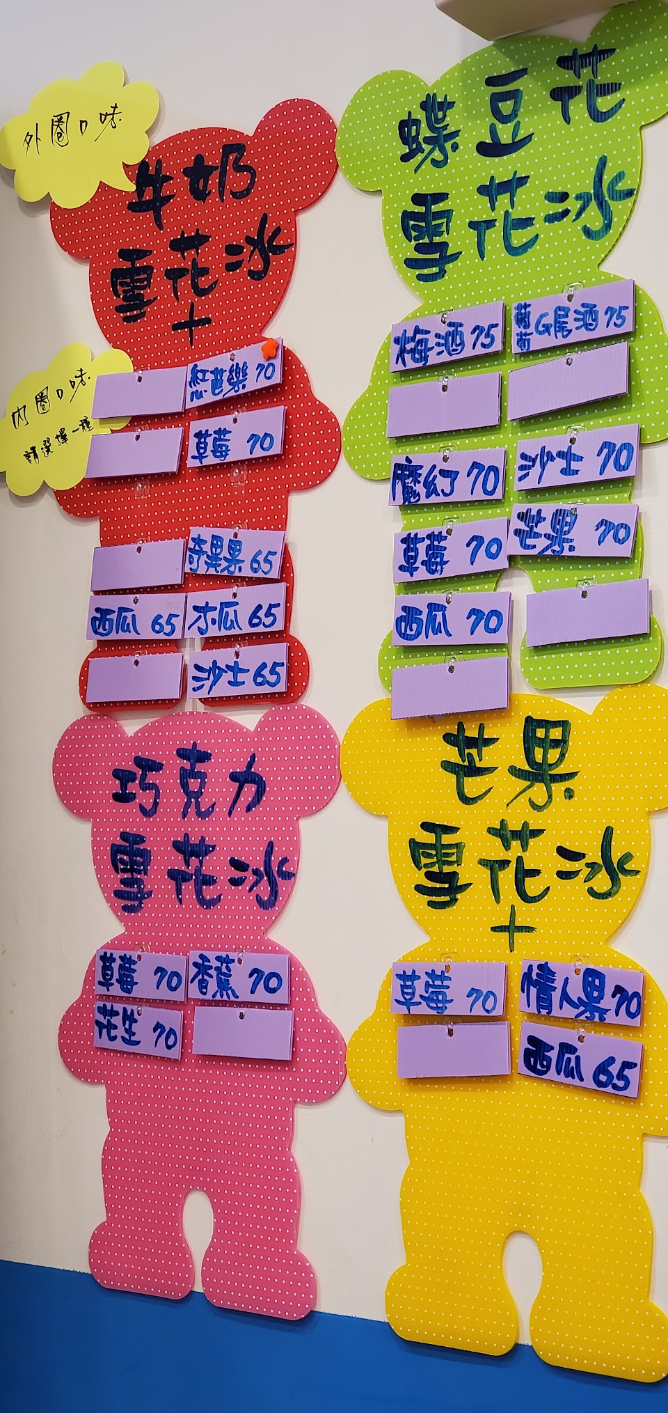 老闆跟老闆娘很親切介紹,牛奶冰裡有驚喜藏爆爆珠(養樂多口味),自製水果雪花冰很天然好吃~