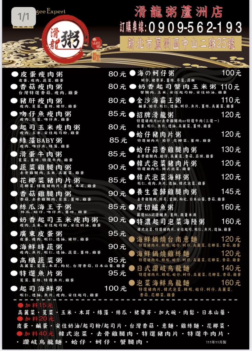 2024最新在地推薦餐廳的菜單_滑龍粥-蘆洲店的菜單、圖片