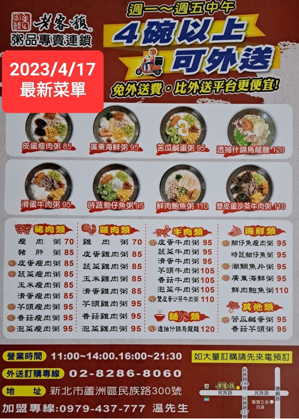 2024最新在地推薦餐廳的菜單_老客馥粥品專賣連鎖-蘆洲民族店的菜單、圖片