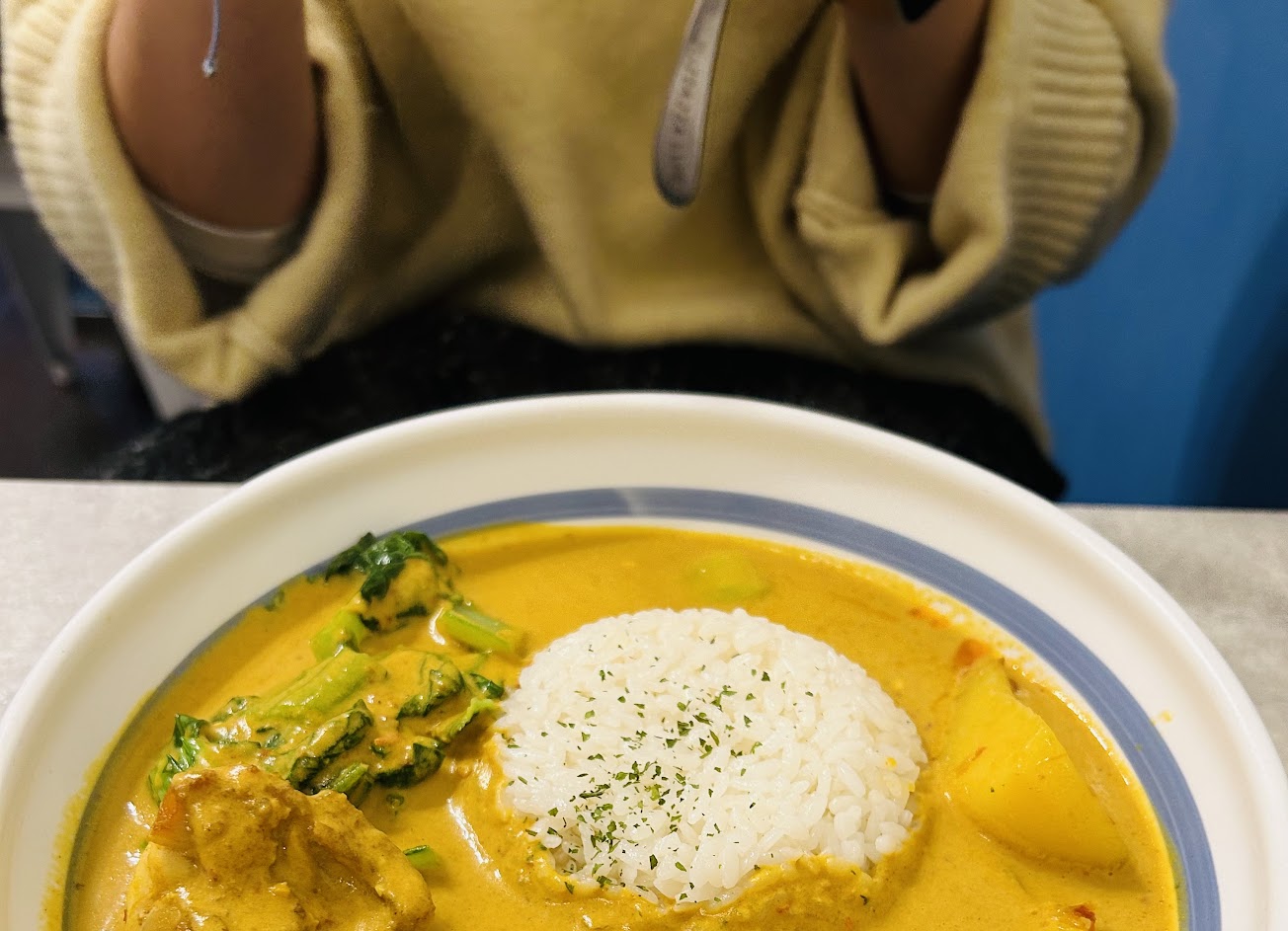 有laksa味道的咖哩飯 雞肉給得很大塊 肉也算嫩