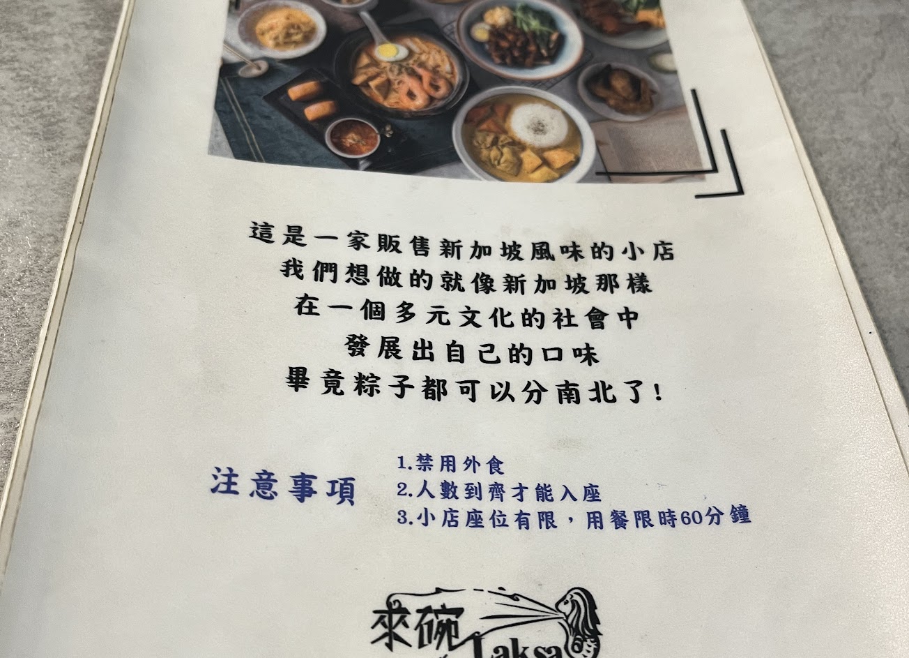 我因為不想吃麵,點了紅燒肉飯,肉有點硬,似乎煮的有點過久,太老了。 同事點了 招牌 laksa 麵,似乎覺得還不錯。 結論:想吃 laksa 麵就來,不想吃麵可以考慮一下。 服務 內用 餐點類型 午餐 平均每人消費金額 $1-200 餐點:3 服務:3 氣氛:3 建議的餐點 紅燒肉飯套餐 特殊餐點 新加坡特色料理在台灣不常見