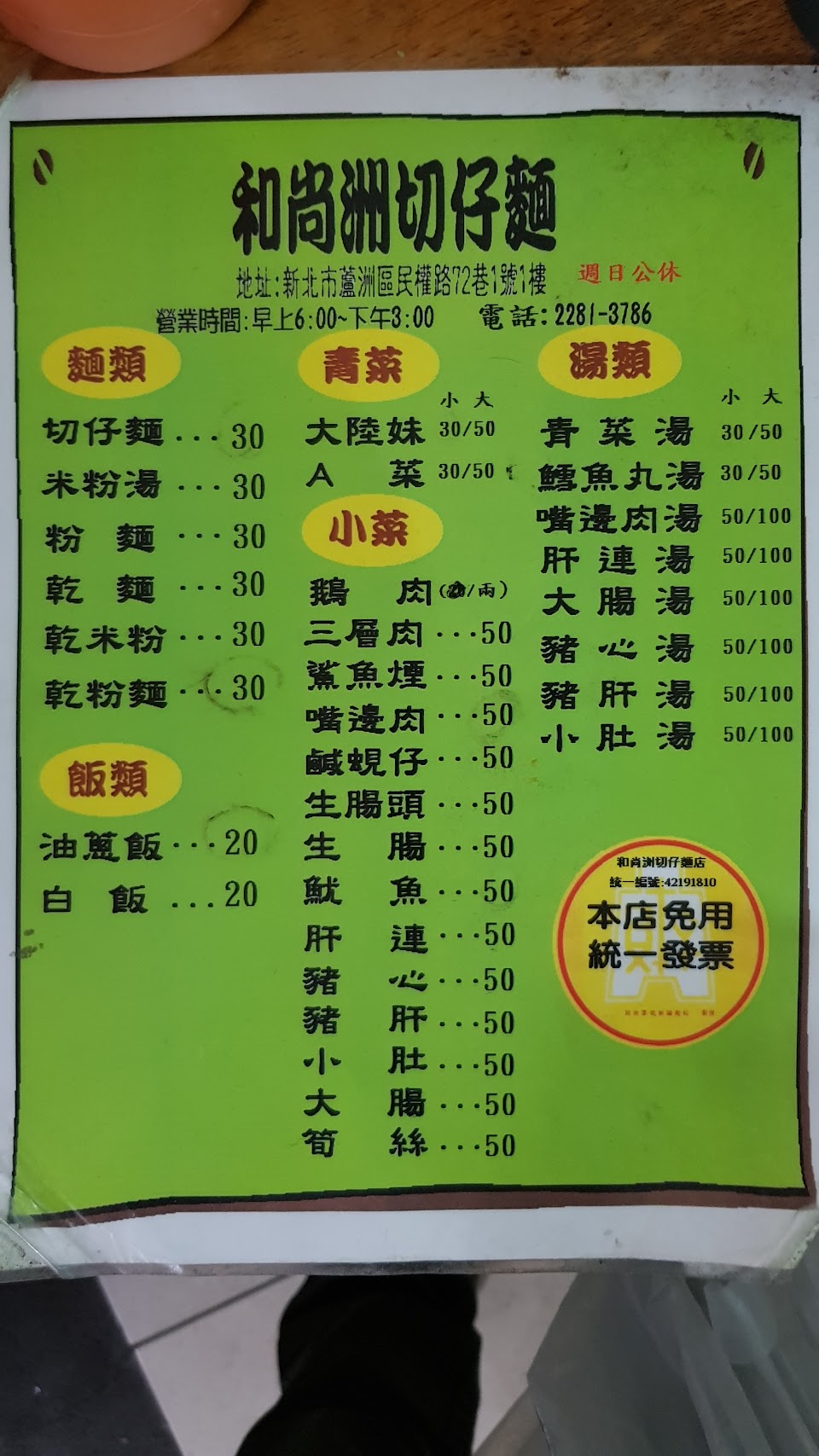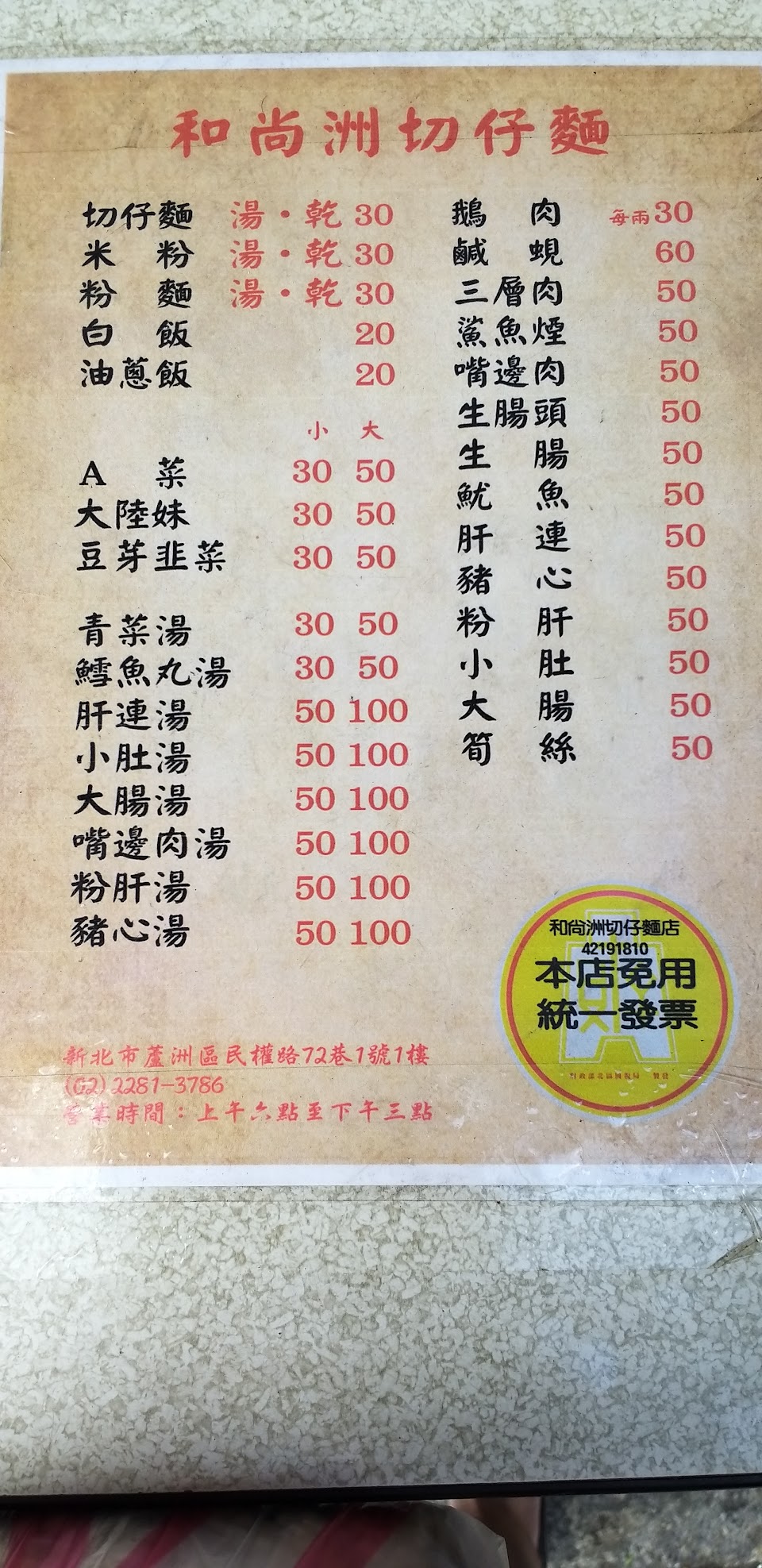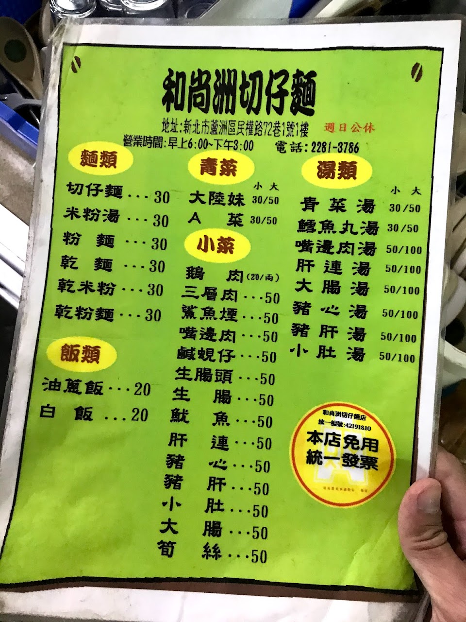 2024最新在地推薦餐廳的菜單_和尚洲切仔麵的菜單、圖片