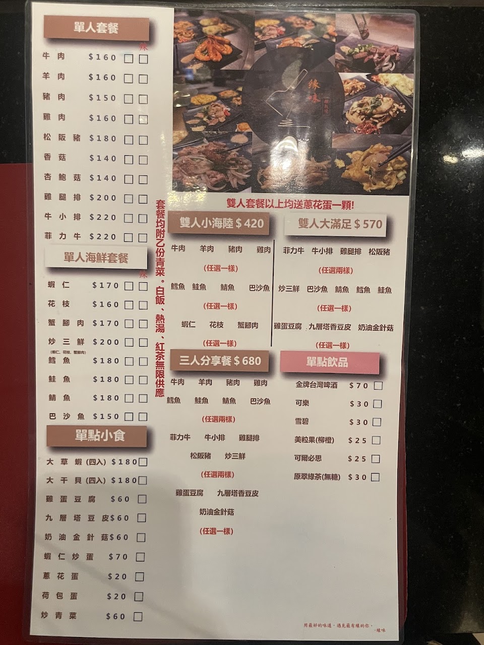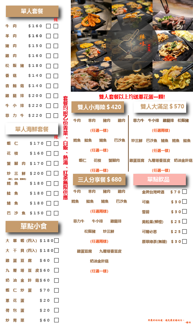 2024最新在地推薦餐廳的菜單_緣味鐵板燒 徐匯店的菜單、圖片
