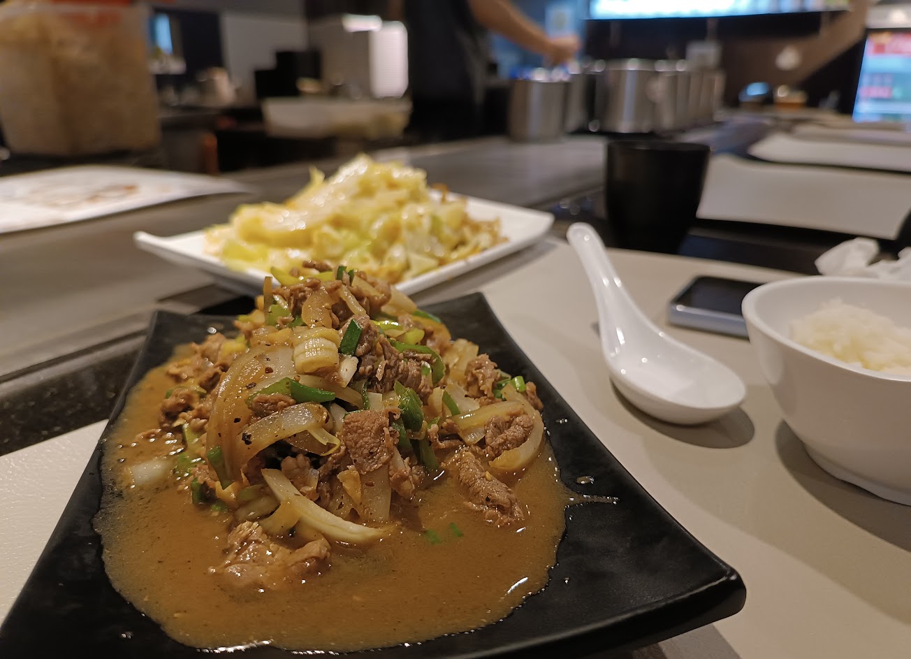 味道還算不錯,價格比一般小資的鐵板燒在稍稍貴一點,不過白飯、湯跟飲料的都是免費續相對來說有點彌補到,而且像我這種不吃豆芽菜的人,可以跟店員說都換成高麗菜!