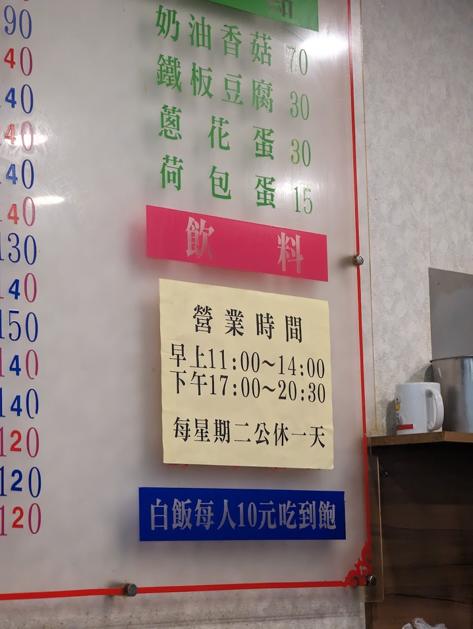 這家也算常吃,平價、女店員親切,今天男生點單說要等20分鐘,我時間到回來漏單了還沒做,約莫總共等一小時。吃到一半菜裡夾出洗碗鋼刷的鐵線,差點吞到⋯