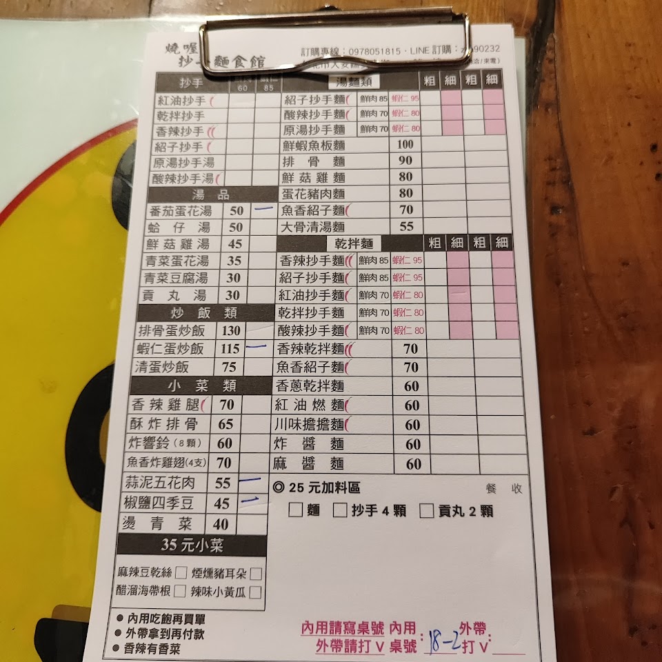 1. 動線問題:當天看是料理主要有兩人,接單上餐和接待是一人,但由於接單總共有來自Line和電話兩種,而現場又有內用跟外帶兩種,內用若滿位還需要領號碼牌,用餐尖峰時電話常進單、外場就沒空應付外帶還有要進去內用或拿號碼牌的客人,其實非常混亂。有些可能是過去早些時代留下來的訂餐模式,但如果現在客人多了,感覺可以考慮減少進單的方式,讓入場更順暢。