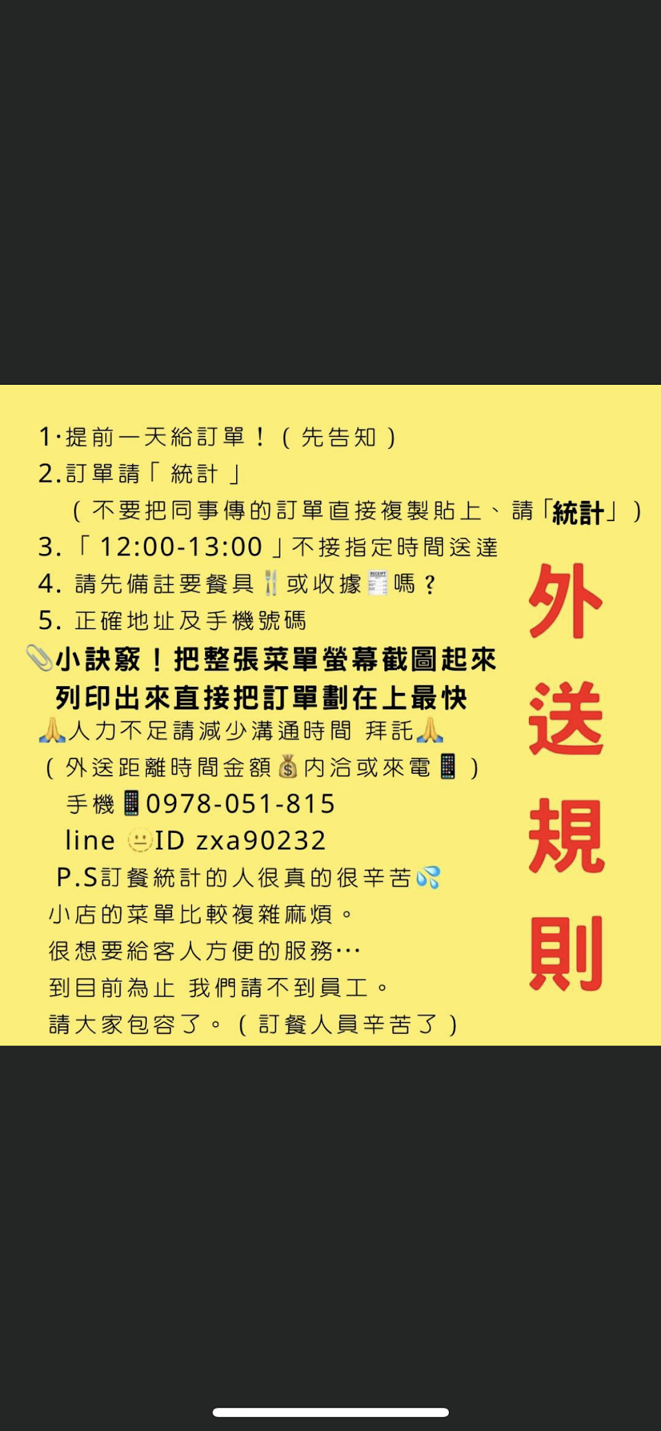 建議店家,如果現場已經忙不過來,要不要考慮暫時關一下外送的單,不然不只客人在等,外送也在等,然後順序又不是按照順序的,整個就變成一團亂。
