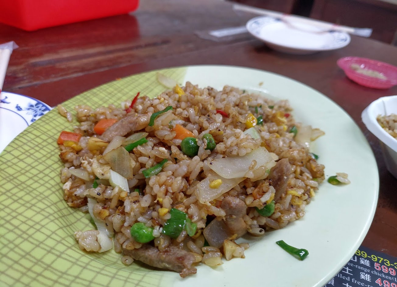 但70元炒飯真的不優,炒三色就算了,醬油放太多跟肉絲蛋焦焦的整個呈現黑咖啡色,看了真的沒胃口…