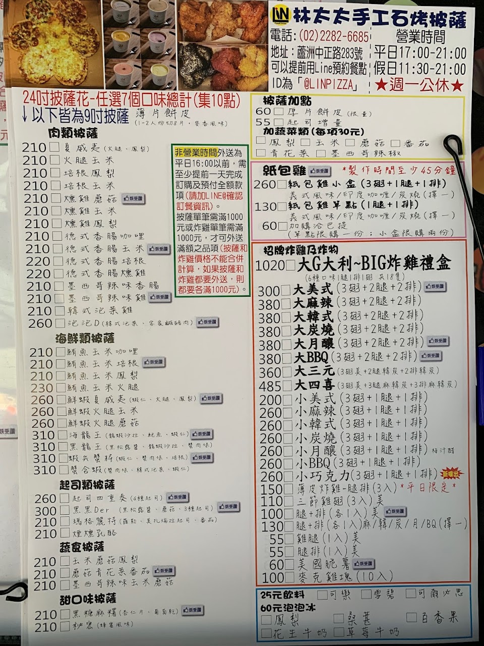 2024最新在地推薦餐廳的菜單_林太太手工石烤披薩(蘆洲店)炸雞/紙包雞/紙包麵的菜單、圖片