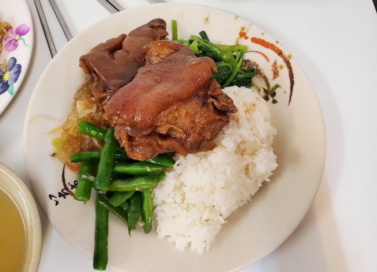 已吃飽看到隔壁的客人吃豬腳飯,我又打包一個便當回家吃。