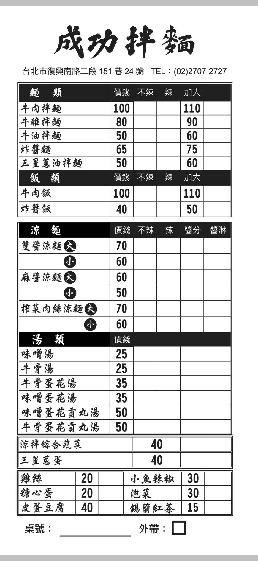 2024最新在地推薦餐廳的菜單_成功拌麵的菜單、圖片