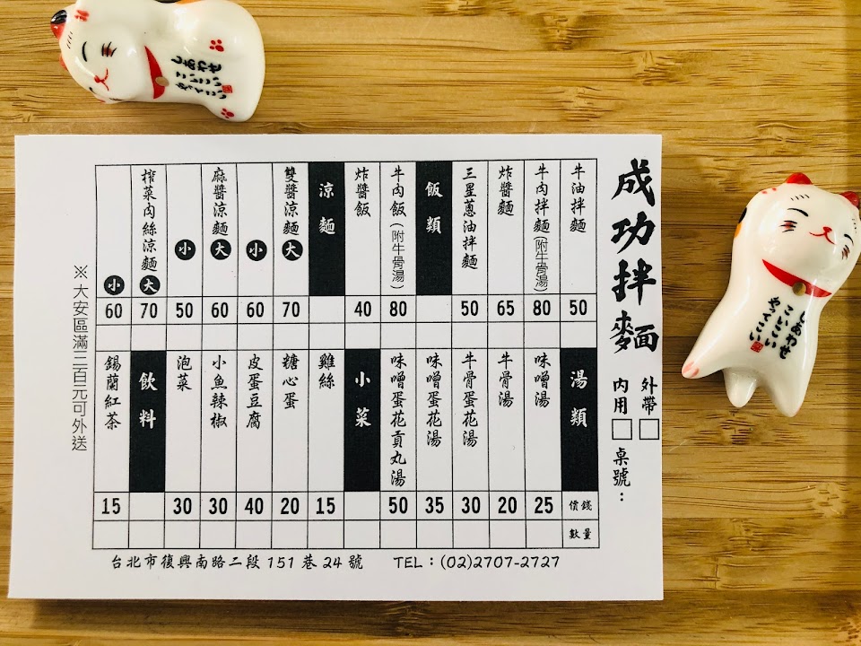 成功拌麵是一家暗藏功夫的樸實麵店,品項簡單卻都意外的美味。舉例來說,最令人驚艷的是「牛油拌麵」牛油的香氣十分濃郁整體口感卻不完全不油膩,一般的X油拌麵最怕的就是很油,但成功拌麵卻能掌握的恰到好處。
