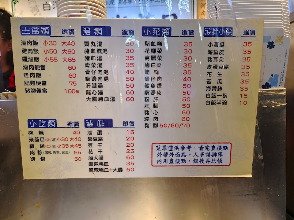 大雞魯飯+小雞魯飯+小滷肉飯+大米苔目湯+滷白菜 共算我$225 離開了才發現似乎不太對….