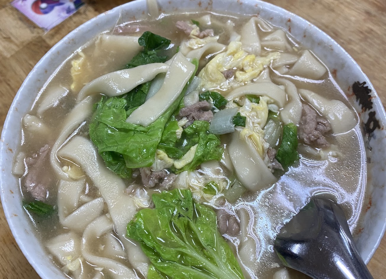 ✅糊塗麵,麵條像刀削麵,口感Q彈不軟爛,湯頭很香濃,應該是有勾芡,裡面還有肉絲、青菜及蛋花,整體口感也像是大滷麵,份量不小,吃完很飽,基本上還滿好吃的!?