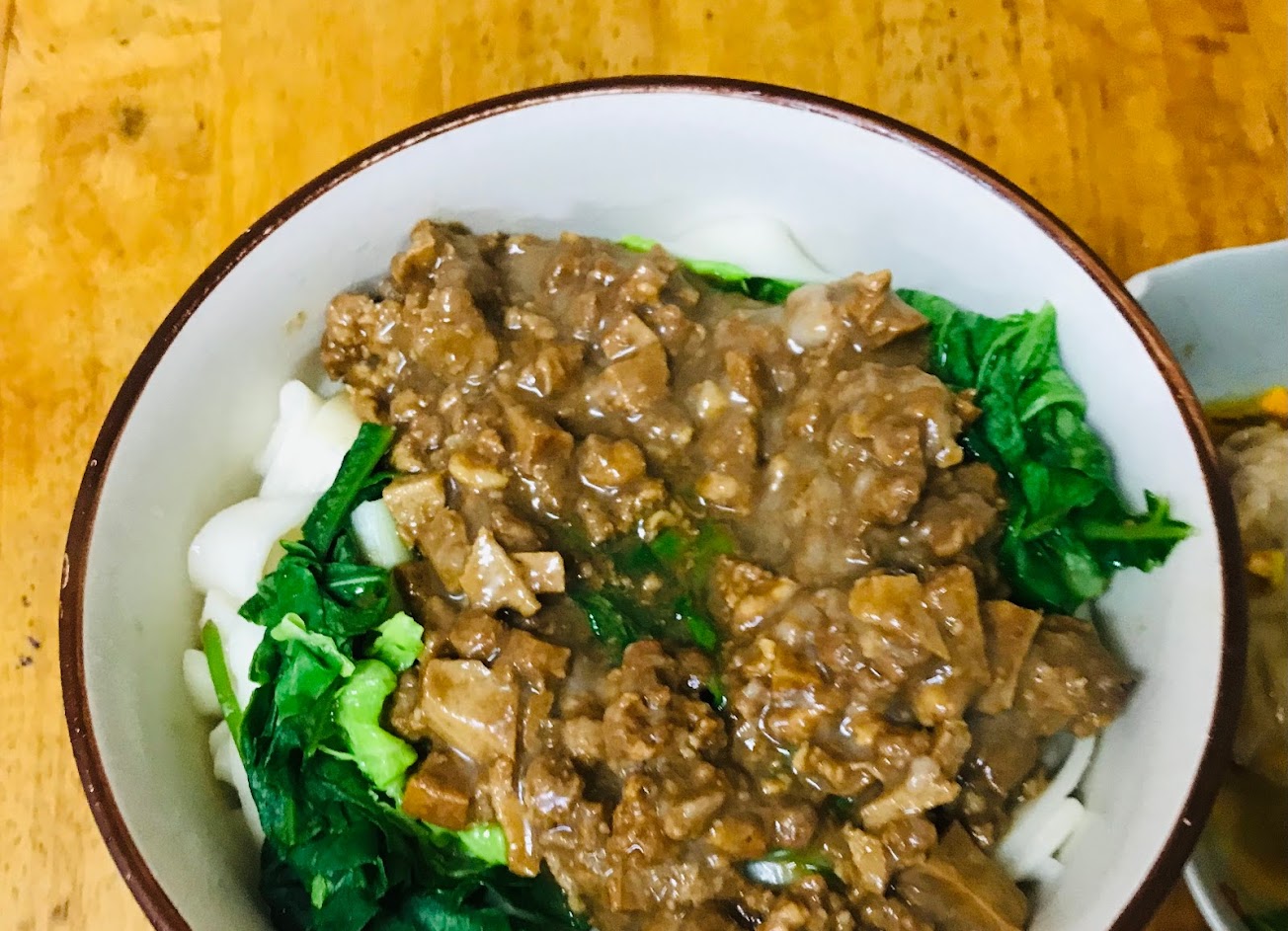 颱風天 騎著自行車,躲雨之際看到了這家店 ,店內通風舒服,老闆熱情的喊單聲廚房開放式,一進門看到自製麵的機器 我想今天有口福吃到好麵條了 小菜味道都不錯 海帶軟且入味好吃 湖塗麵是一碗一碗現煮的 用的是大骨湯 現做的麵條配上白白的大骨湯 湯給味道帶來厚度 自製麵條的麵粉帶來稠度 真是越來越難得 這是孩兒時的記憶 這颱風天來上一碗 稀哩乎嚕的 配上小魚辣椒 那外省腔調 整個到位 滷肉飯貌似肉燥飯 我不喜歡
