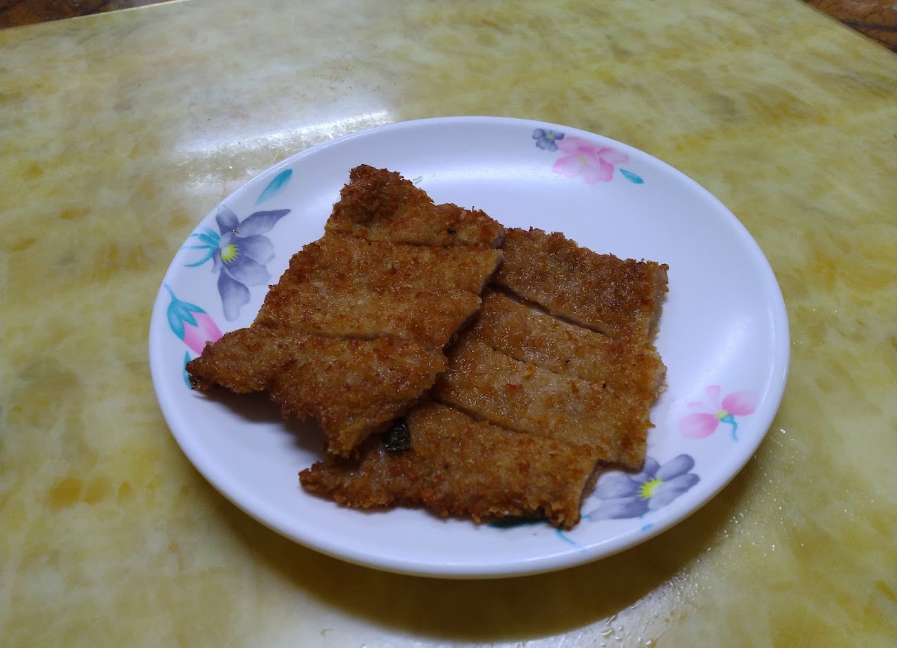 店家的招牌就同店名-糊塗麵,是類似熗鍋麵,先炒過料後加麵加高湯煮出來的。麵條是粗的家常麵,我很愛,很有嚼勁口感很好。料有青菜、蛋、肉絲,肉絲放得不手軟,很多。湯頭很香很好喝,有點像勾芡但其實不是,是麵粉ㄧ起煮出來的。麵超級有夠大碗,老闆端上來嚇到我。炸排骨也很好吃,醃得香,麵衣跟肉處理的很好完全不會分離。