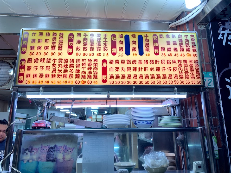 滷肉飯,牛肉麵,水餃,湯餃,海鮮粥,小魚乾麵,燙小卷