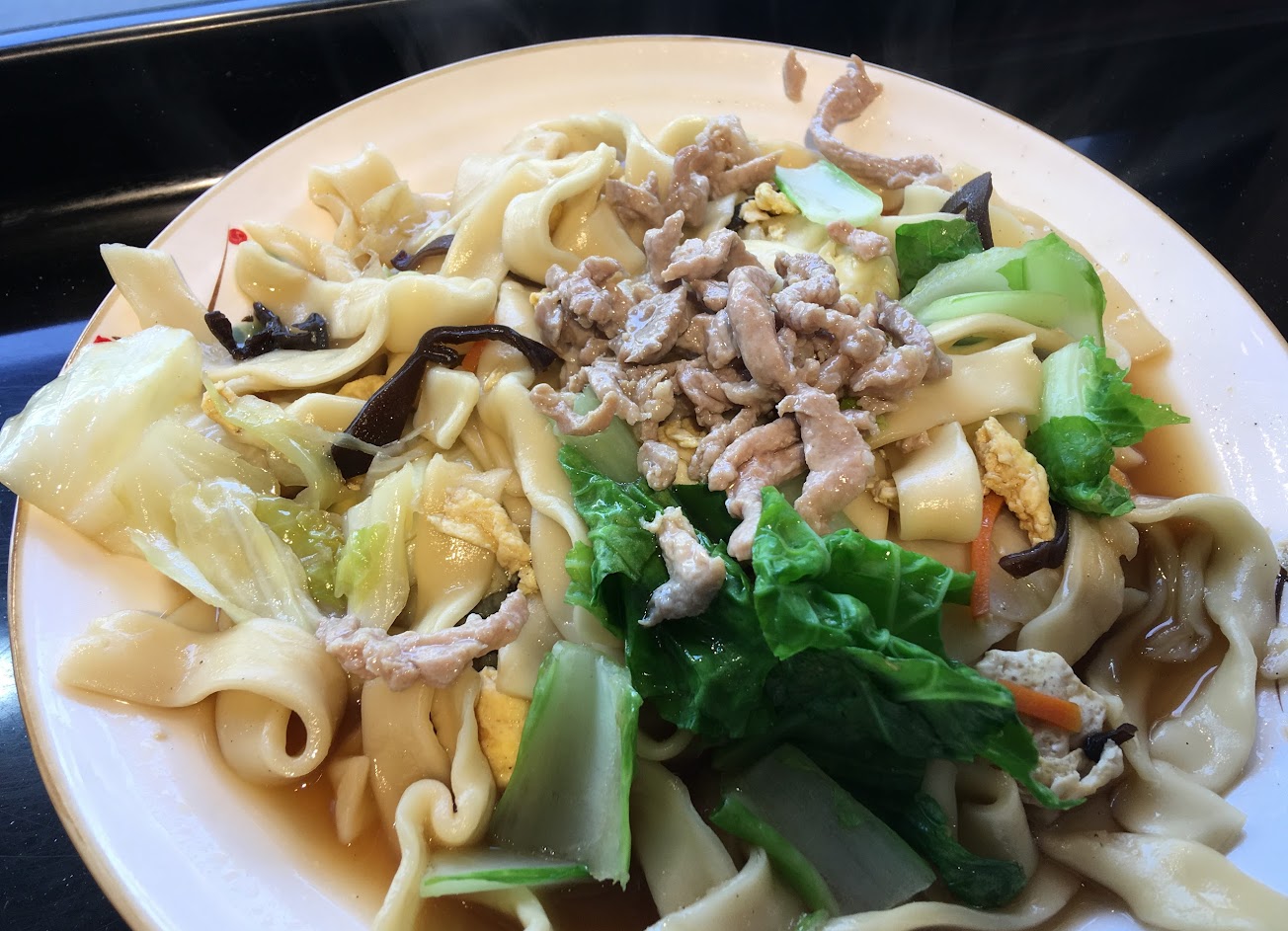 大份的炒飯兩個人可以吃得很飽,炒麵/湯麵則剛好。麵條有點像刀削麵。