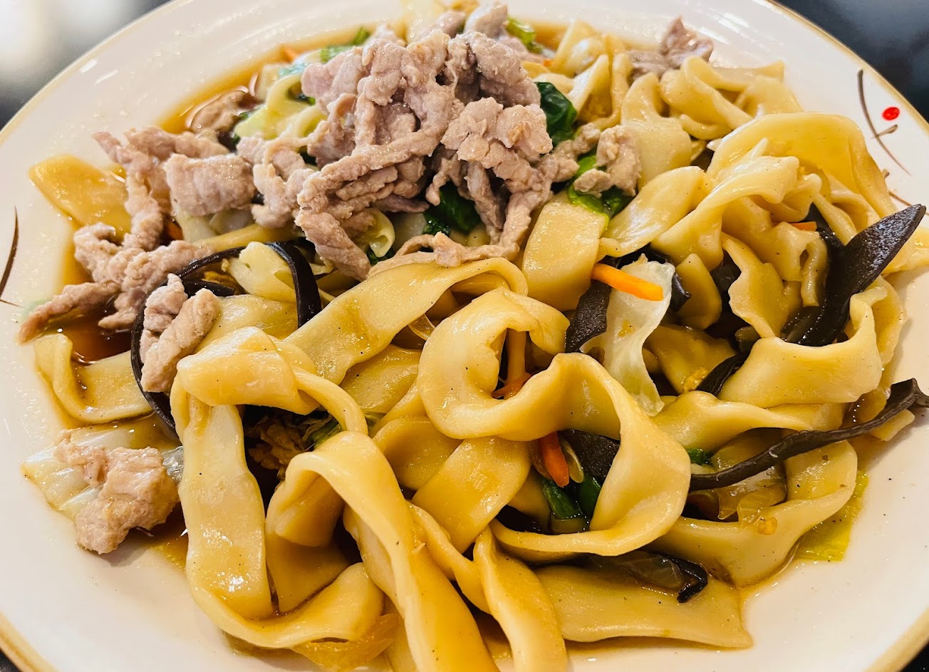 進去後發現當年的小男孩長大了,儼然已成第二代老闆了,架勢頗有老闆的模樣……先在櫃台點餐付款後等待木須炒麵上桌,一會兒麵就上桌了,一夾起麵條發現不是木須炒麵啊~我記錯了嗎?之前是像刀削麵的麵條,現在是寬版的拉麵……少了些刀削麵勁道的口感,調味倒是沒什麼差……該有的鑊氣還好沒有跑掉,下次有機會會再回訪的