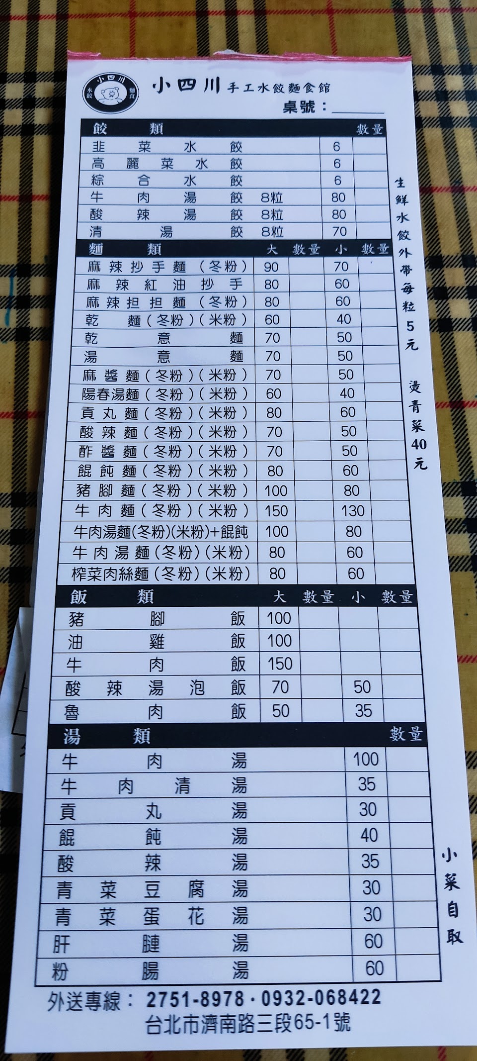 濟南路上的一家小面館,雖然叫做小四川,但其實餐點基本就是常見的台式小吃。