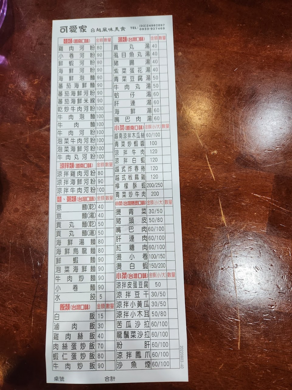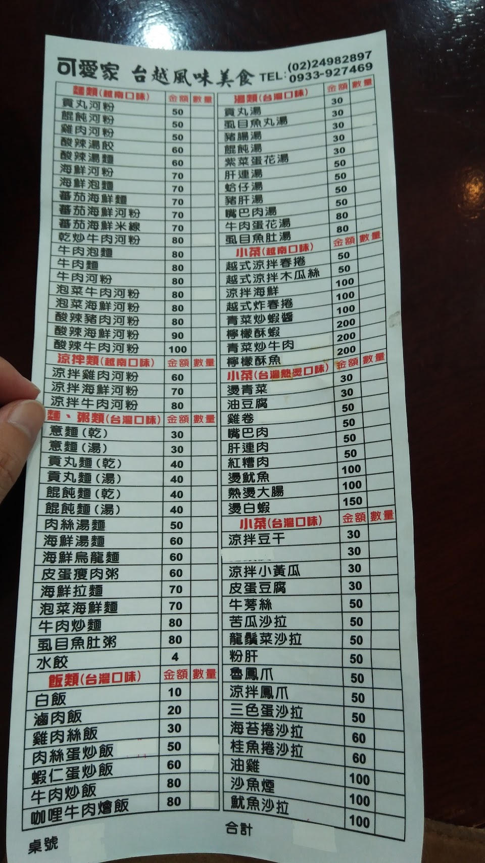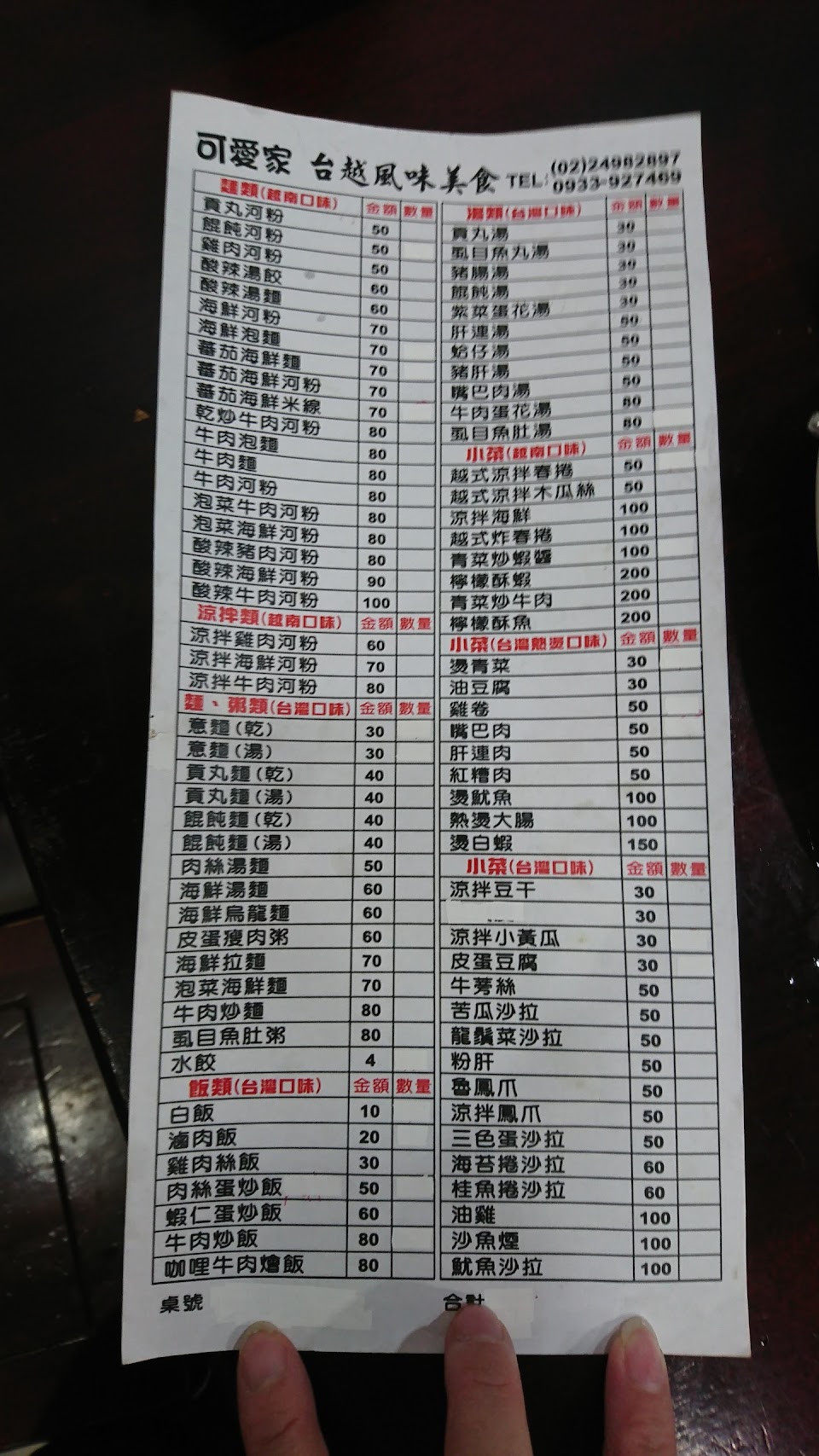 2024最新在地推薦餐廳的菜單_可愛家台越風味美食的菜單、圖片