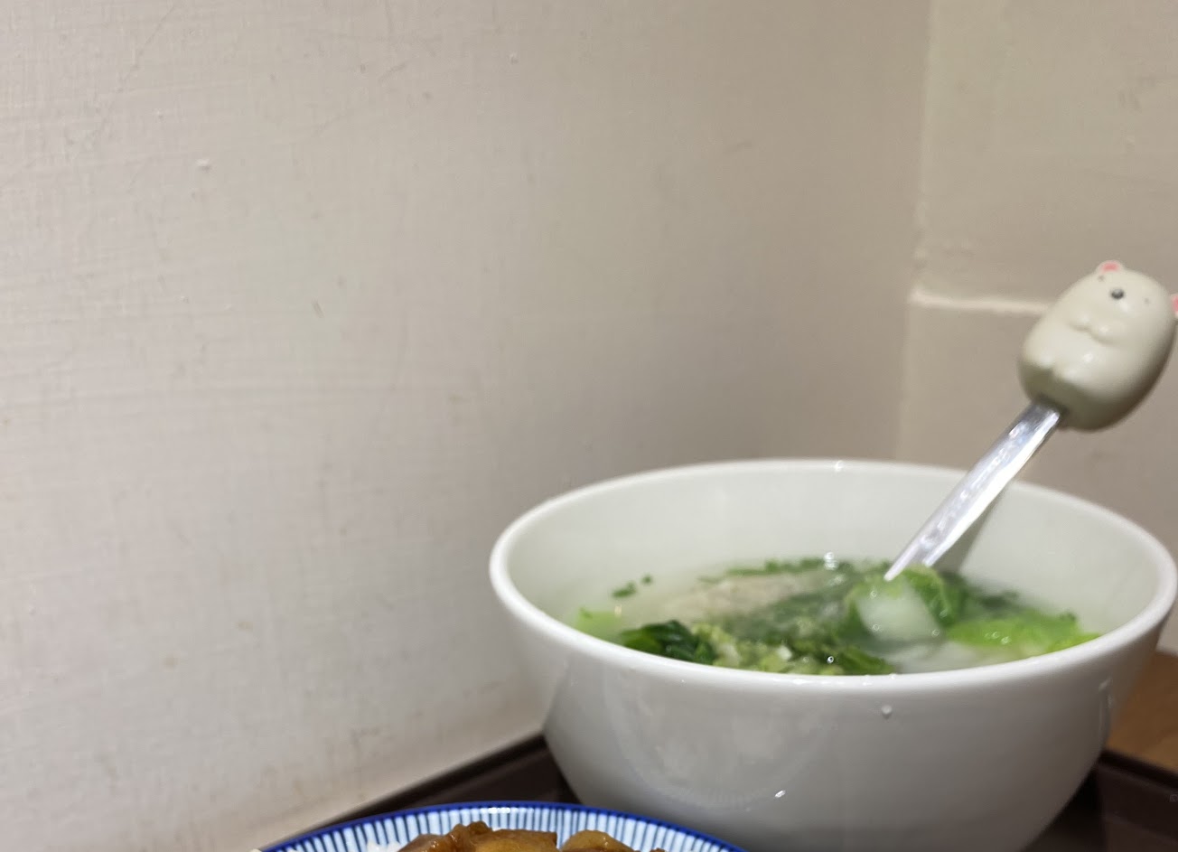 乾麵清爽不死鹹不油膩,好像有加一點高湯,多了一分鮮味,羹也是清淡口味,但白菜魯有點太清淡了,跟燙白菜差不多。