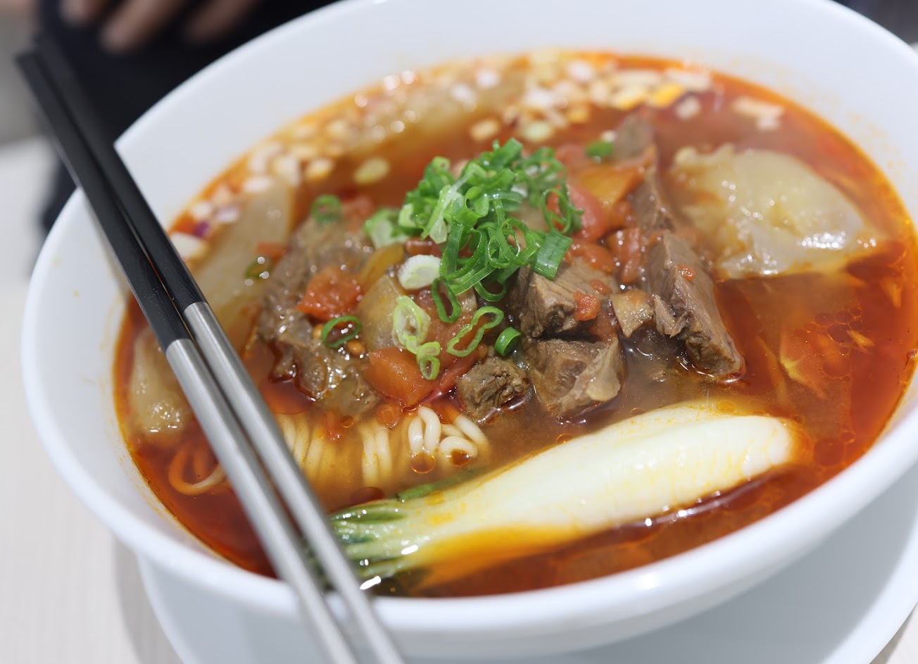 川渝蕃茄牛肉麵湯頭濃郁,不會太辣但有花椒的麻,很適合台灣人口味!肉跟湯的份量也很足,外帶吃完麵還夠自己再加一球麵~值得回訪!