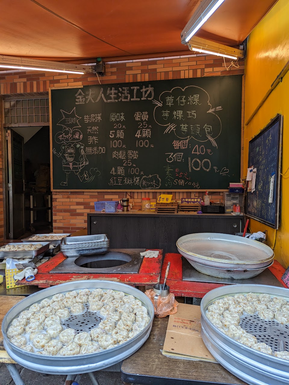 日前到金山老街晃悠,意外路過金夫人。其所提供的食品其實不少,但由於如芋粿巧、蜜地瓜等大多常見,原本不以為意,但看到了碩大的芋泥球,當場決定一試。不料一吃就深深為其所吸引,遂將金夫人列為以後必吃店家。