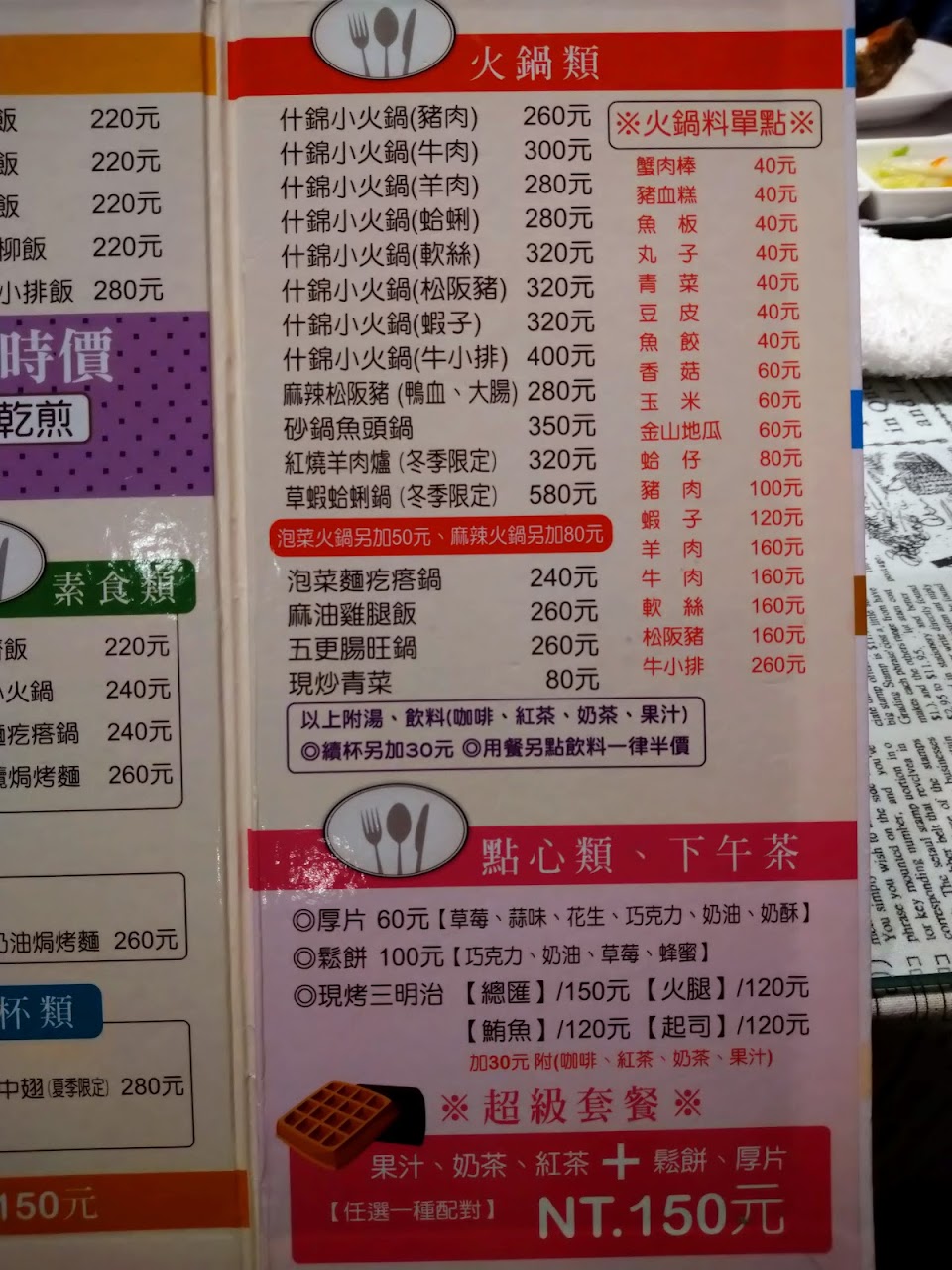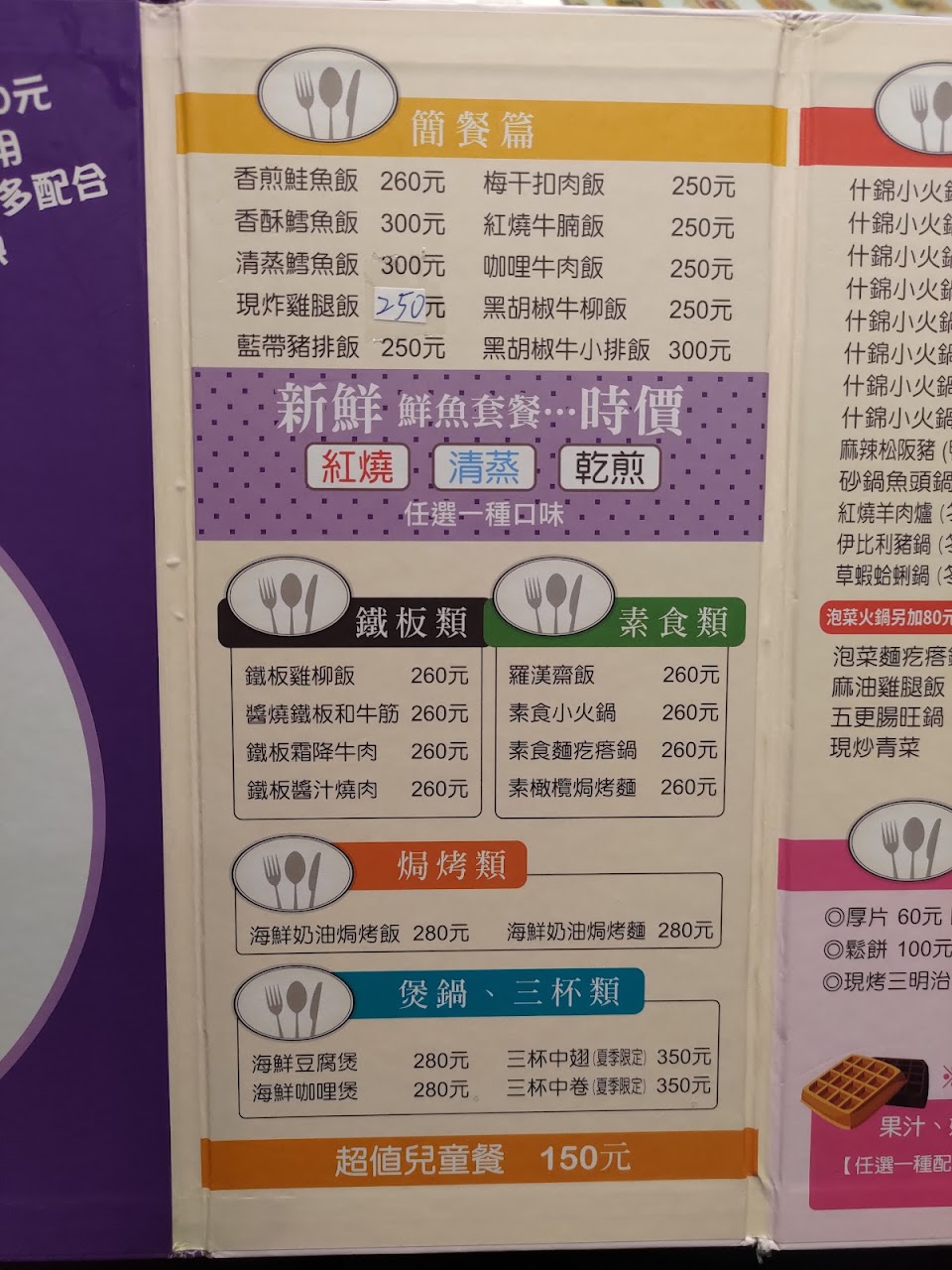 薰衣草奶茶 鐵板雞柳飯 麻辣松板豬 砂鍋雪魚頭火鍋
