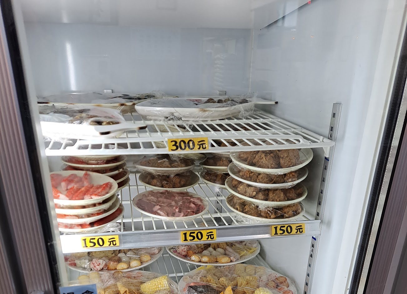 10月24日星期日下午一點多到達,雨天人還好多,用餐區分為路口的家庭鍋(大圓桌)和最內側餐間的單人鍋區,在單人鍋區這裡面的小櫃臺(進門走到底)拿了號碼牌說要等40分鐘左右,真的等了40分鐘輪到了,我們倆人都點石頭鍋牛肉、豬肉各一份另外有加點現炒筊白筍一盤200元(嫩又好吃)另外有去冰箱自取排骨一份(肉不柴香又好吃),送來的牛肉豬肉都很新鮮,全吃光光一點都不剩——CP值高,停車場超大停車很方便..來金山用餐的好地方..大推