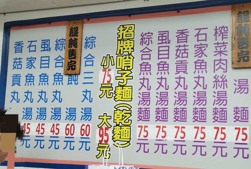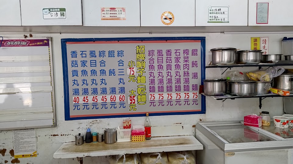 品項並不多,最常點的是哨子麵及虱目魚丸湯或餛飩湯。