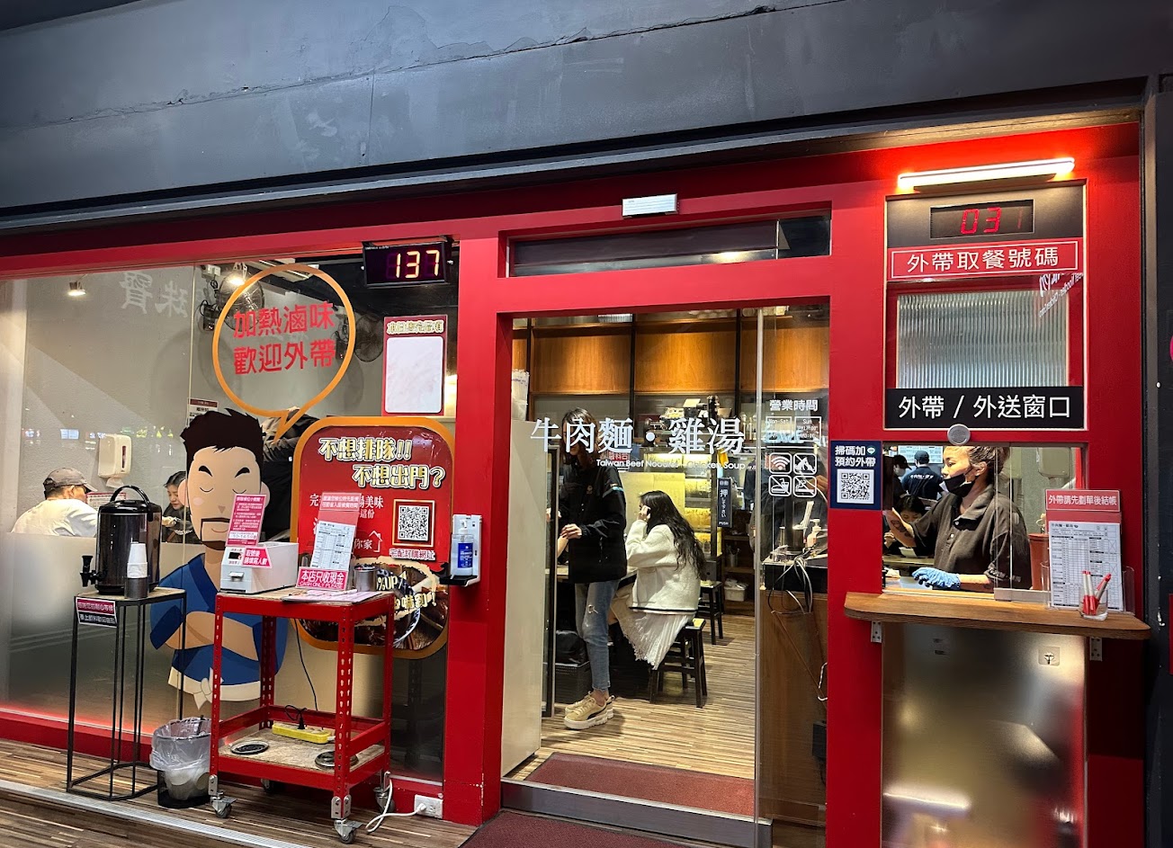 假日約八點半初訪來,人潮絡繹不絕,先抽號碼單並在外面等待,等待區備有熱茶實在貼心、內用也有圍兜兜提供避免湯汁噴到身上衣服;這次點紅燒半筋牛肉麵小碗(一球細麵),牛肉的厚度跟軟嫩不過爛的口感,吃起來非常爽!牛筋也是軟嫩又Q,本身湯頭帶有小辣、平時不吃辣的我將湯頭調整成微辣,儘管如此還是能感受到辣度?,不過很好吃!畢竟是紅燒的湯頭,湯頭的味道是偏重、三個辣的調味系列我只用了一點點的辣油放在湯裡感受其湯頭的變化、的確味道有更加濃純,相對的辣度也更加明顯,請大家酌量使用;單點的豆皮有著適當的嫩度並且滷得不過重、是舒服的,另外最令人驚艷的是我在很多間的牛肉麵吃到的酸菜都令人失望,這間的酸菜我真的很喜歡!有折一點點的酸度也帶有一點脆度,如果肚子很餓真的很想吃個乾拌麵拌上他們的酸菜;站在餐飲服務業的角度來看(環境、餐點、服務)整體而言還是值得五顆星,希望有機會再來品嚐雞湯!