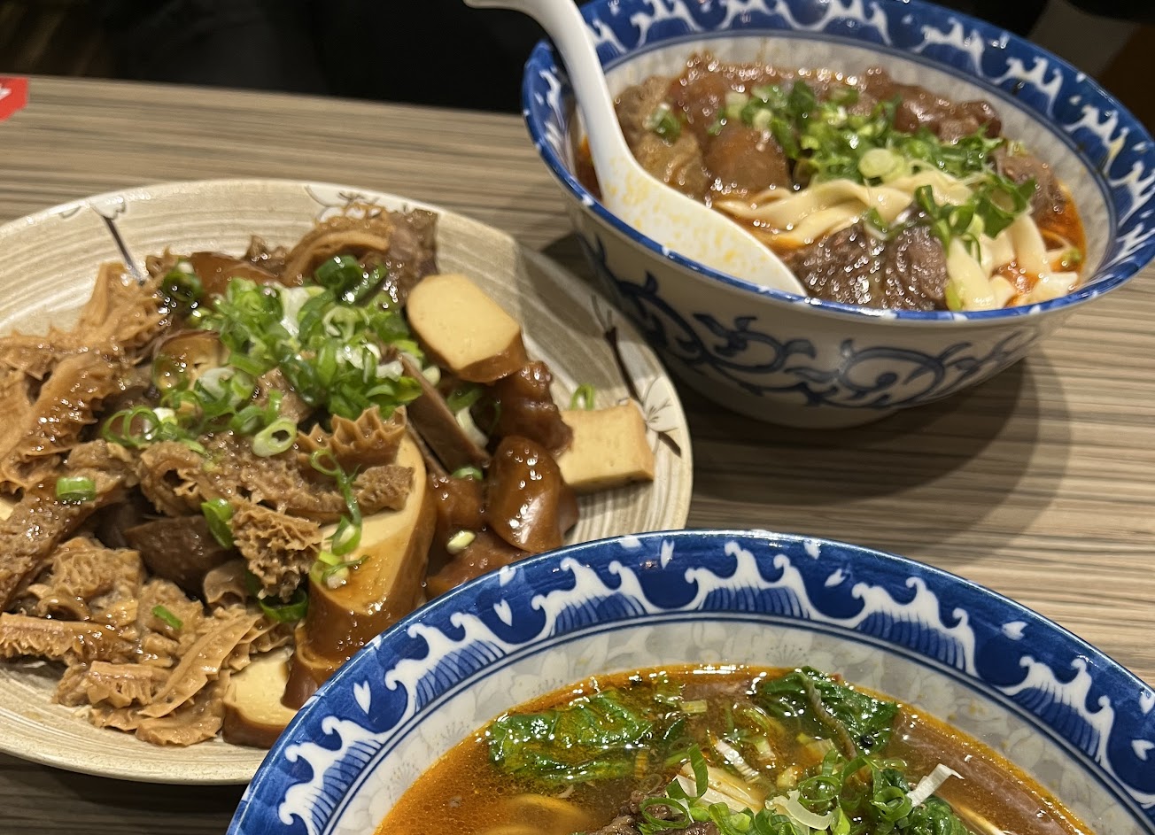 – 牛肉麵的牛肉品質有點參差不齊,有些太柴了、有些很難咬、有些又很軟嫩好吃。麵體Q彈有嚼勁。(有分細麵、刀削麵、不加香菜、不加蔥給大家做選擇,貼心!)