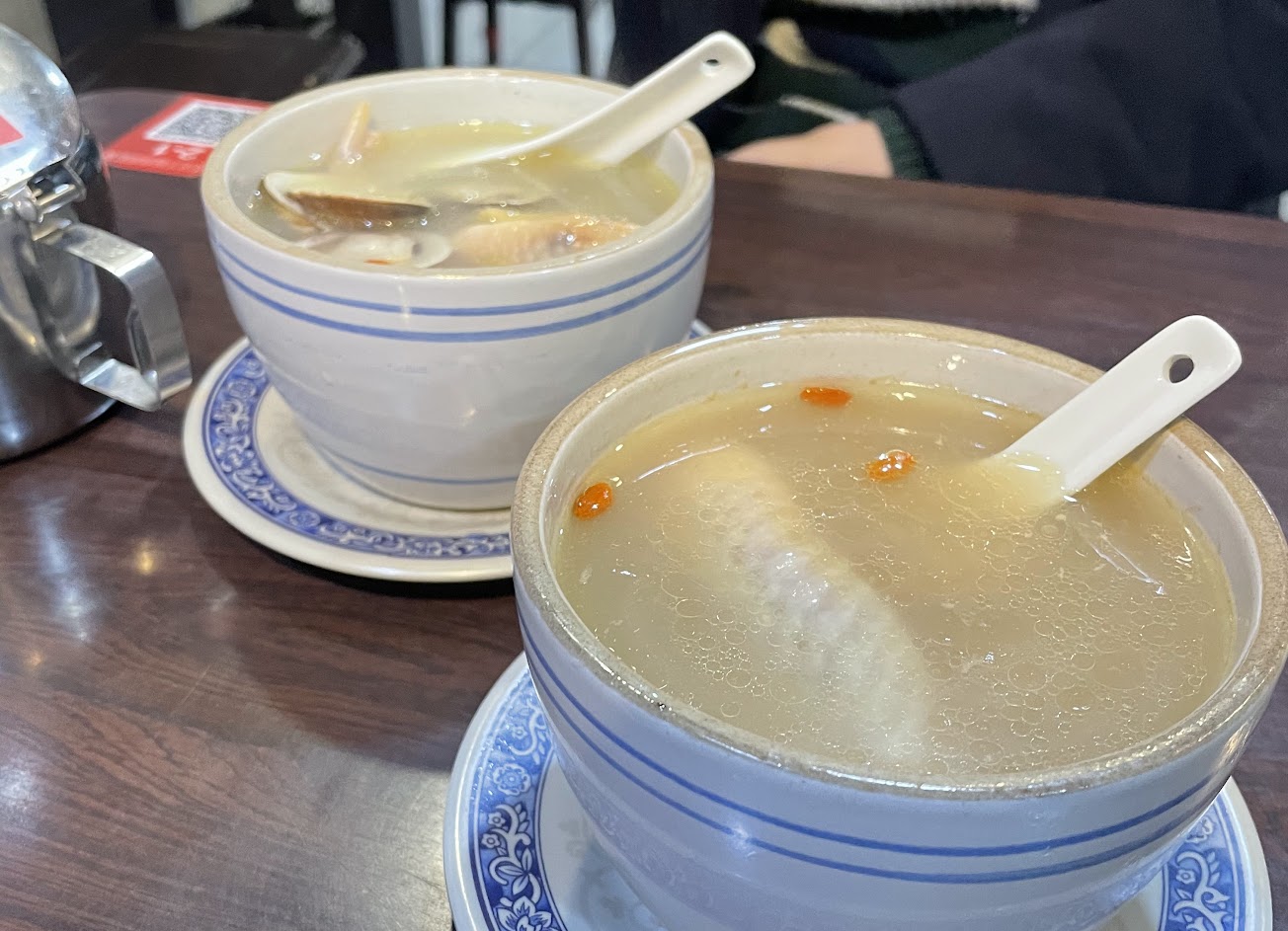 牛肉偏有嚼勁,這次選擇大碗,可能麵多相對的湯頭也被沖淡了不少~相比之下,牛肉湯滷花干濃郁不少,完整吸收牛肉湯汁,非常夠味,另推蛤蜊雞湯,肉很嫩,可以輕鬆骨肉分離