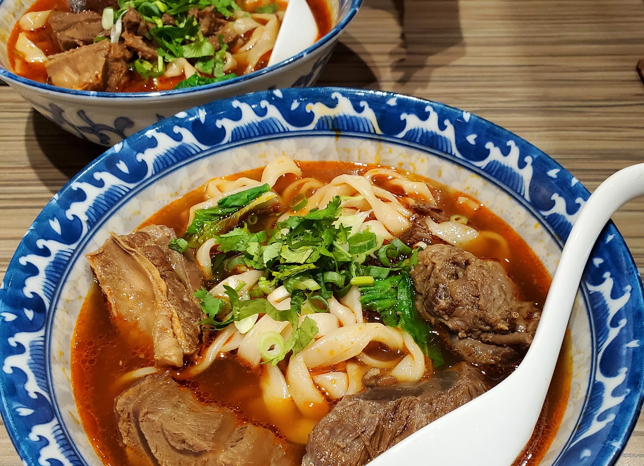 牛肉麵湯頭濃郁,麵條有咬勁,靠選擇蔥花和香菜添加與否,小菜也值得一嚐:滷味都非常入味,麻醬拍小黃瓜清脆。